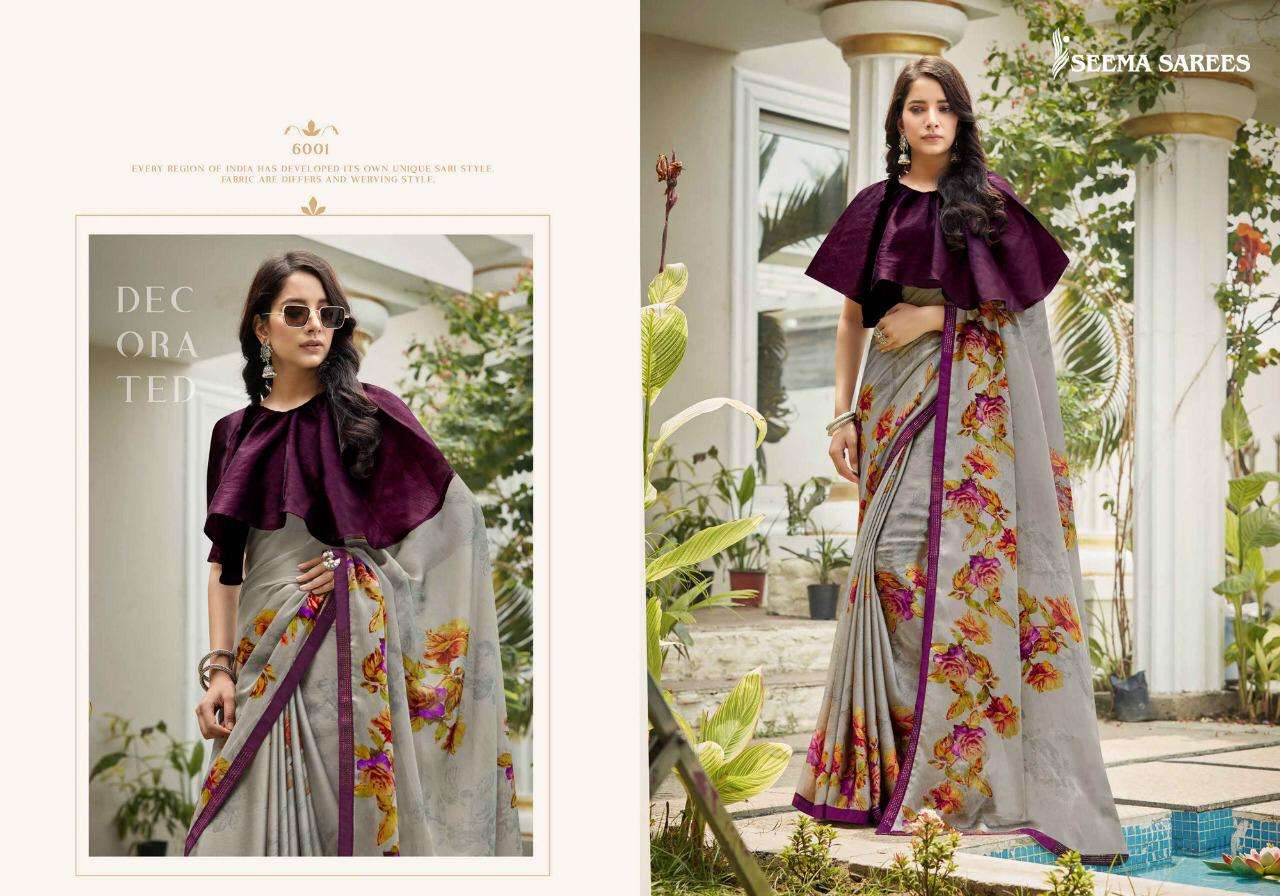 SEEMA SAREES ZAALIMA by Seema saree RATE : 501/- Set to set FABRIC : PXC MOSS CHIFFON   SIROSKI LACE FULL SAREE LACE Set to set |