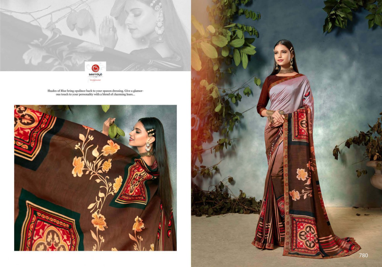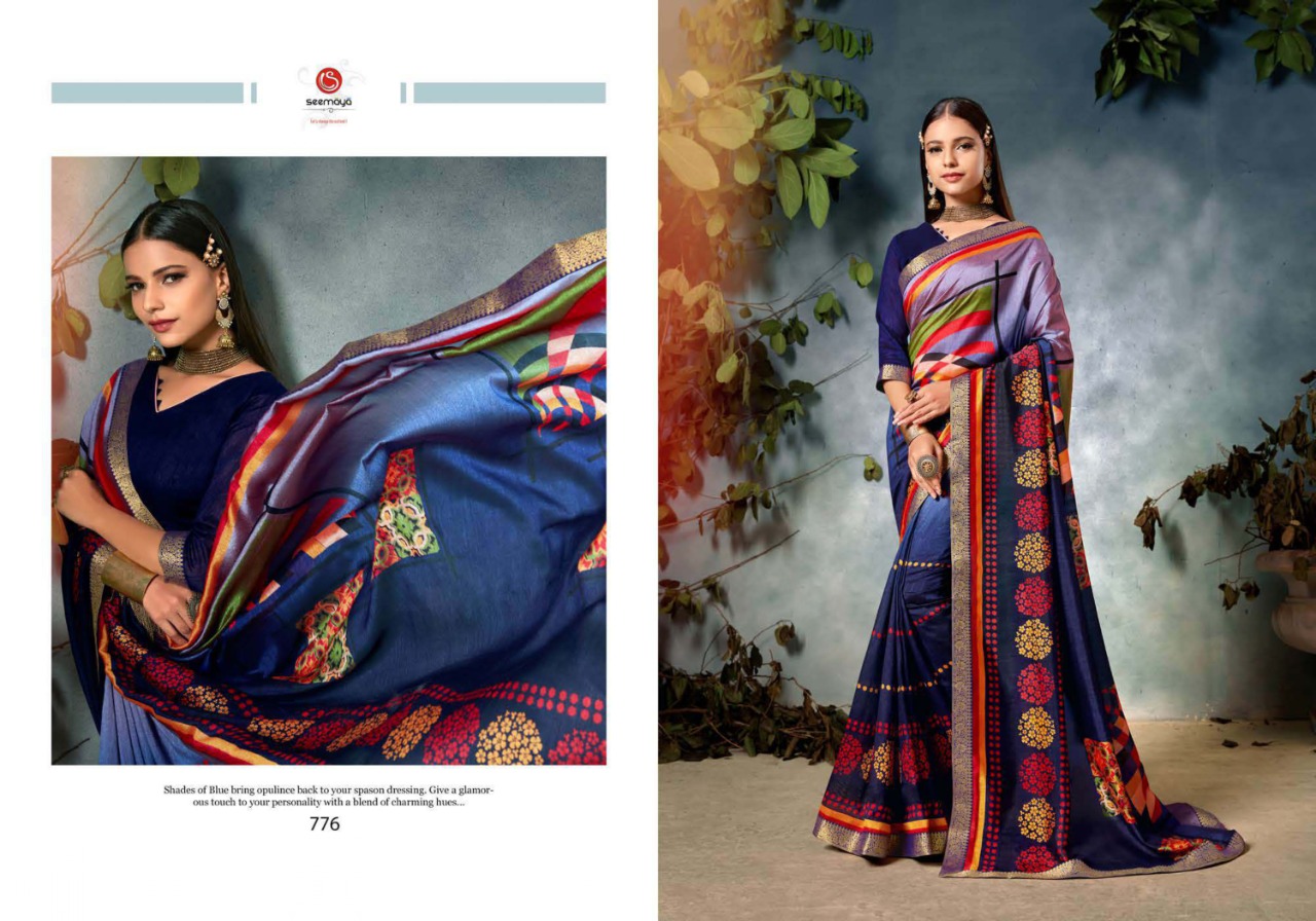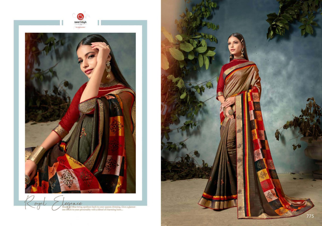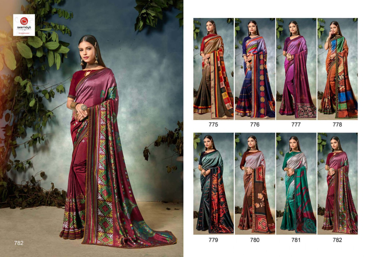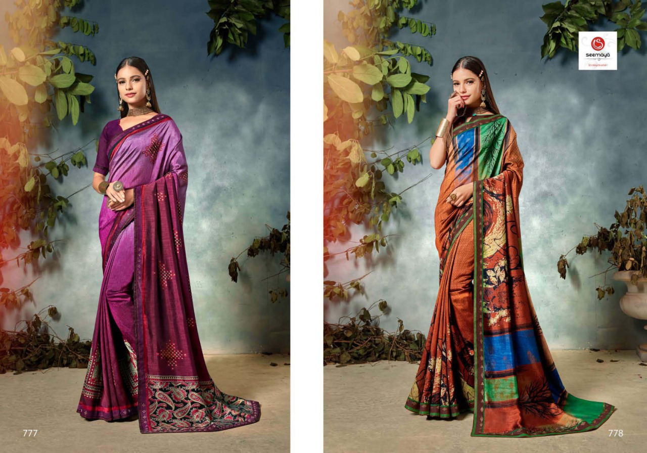 _BASANTI Brand:- SEEMAYA Rate:- 485-/ Fabric:- FANCY CXP VICHITRA WITH FANCY BANARASI BIG AND SIROSHKI BORDER Total Designs:- 8 _Packing pcs :- set to set Set to set Matching :- SINGLE COLOR Cut :- 6/30 mtr |