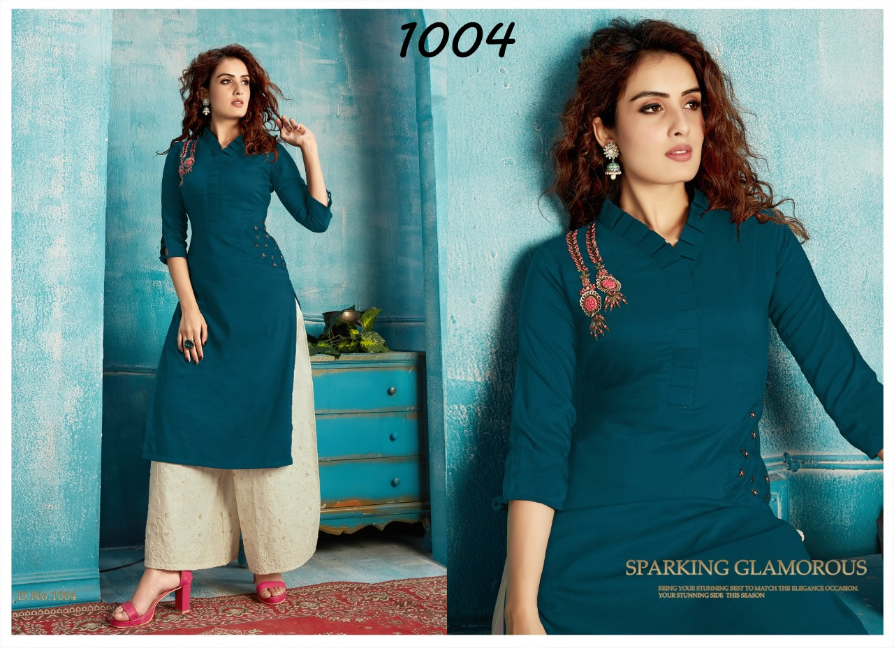 SURAT Brand name- Selesta Catalogue name- INNAYA Size:- M-38 L-40 XL-42 XXL-44 Top Fabric- Chenon silk with cotton lining (Handwork) Bottom fabric- cotton plazzo with sequence work and handwork 899+Gst Dispatch After 10-12 Days Hurry up..... |