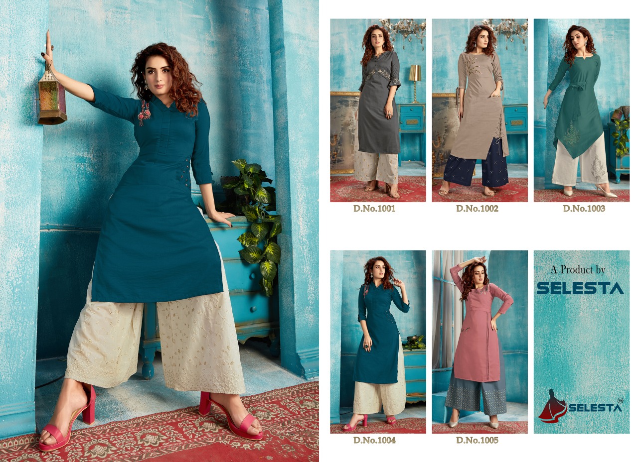Selesta Innaya Chinon Silk With Cotton Plazzo With Kurti Exporter