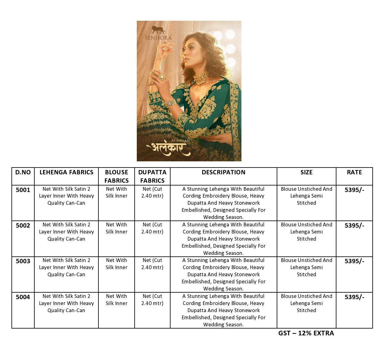 SENHORA DRESSES OFFICIAL ALANKAR Beautiful Colours, Designs, Embroidery & full of diamonds💎 🥳THE PREMIUM LEHENGA COLLECTION FOR WEDDING AND UPCOMING SEASON 🥳 Avg Rate - /-5395 Price list & Fabric Details Attached... Delivery after 5 days Book Your Orders Now |
