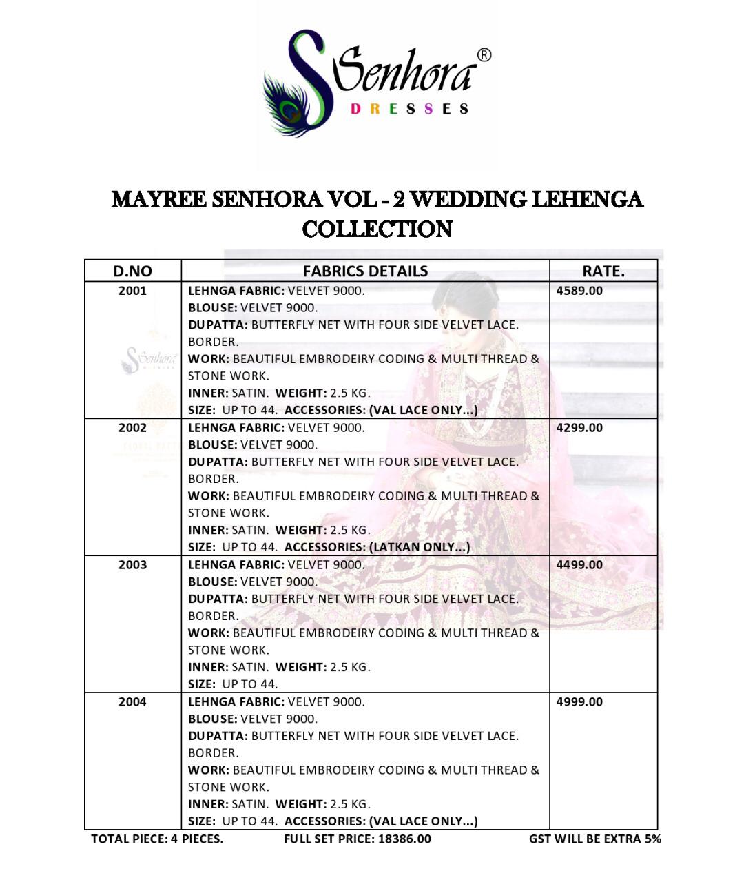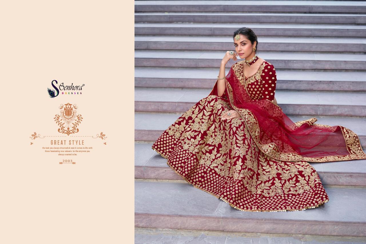 "PREMIUM COLLECTION FOR PREMIUM PERSON " Series - 2001 to 2004. SENHORA DRESSES REPRESENT INDIAN WEDDING CULTURE LEHENGA BRIDAL WEAR CONCEPT CATALOG MAYREE THE VELVET COLLECTION FOR WEDDING SEASON ONLY FULL SET Delivery from tomorrow |