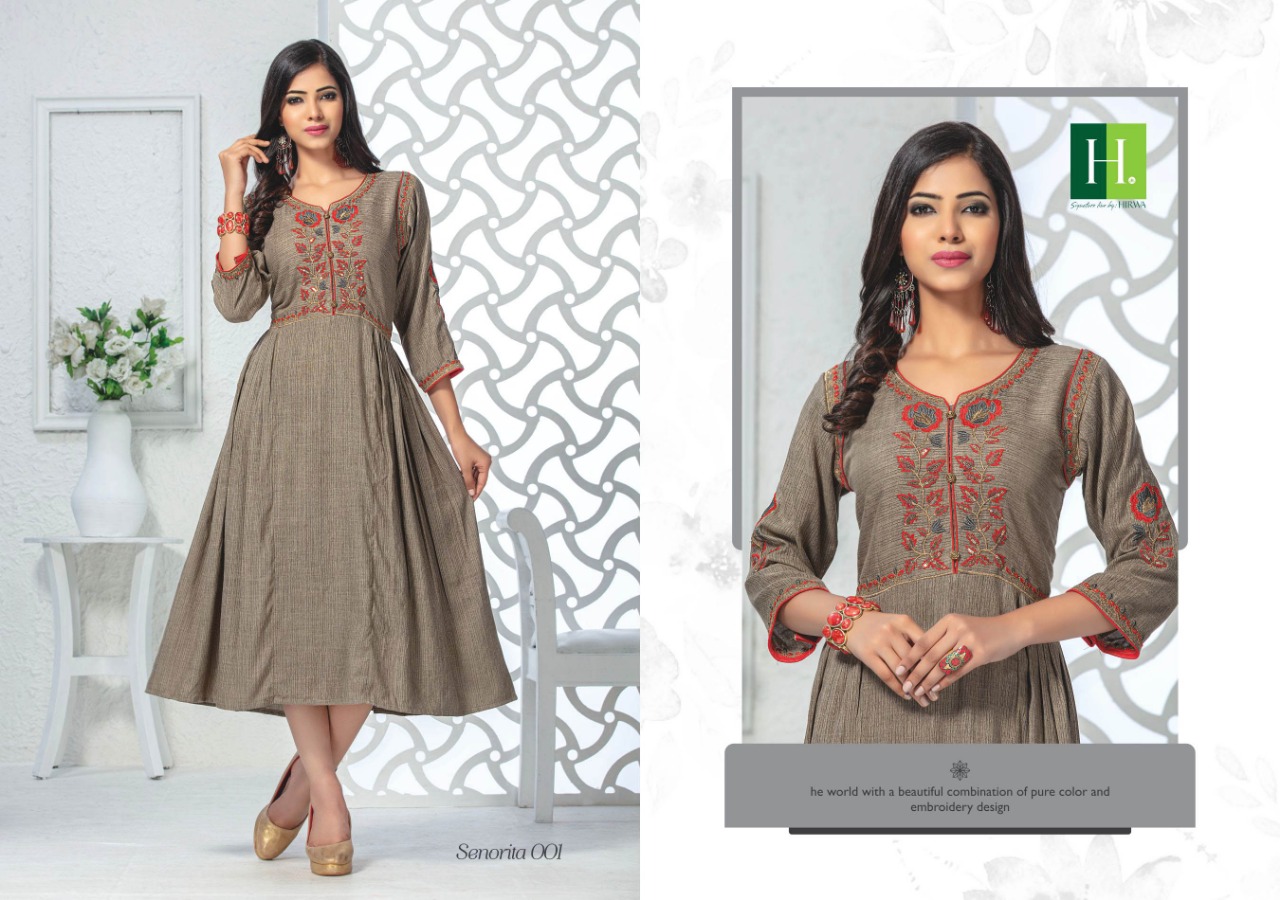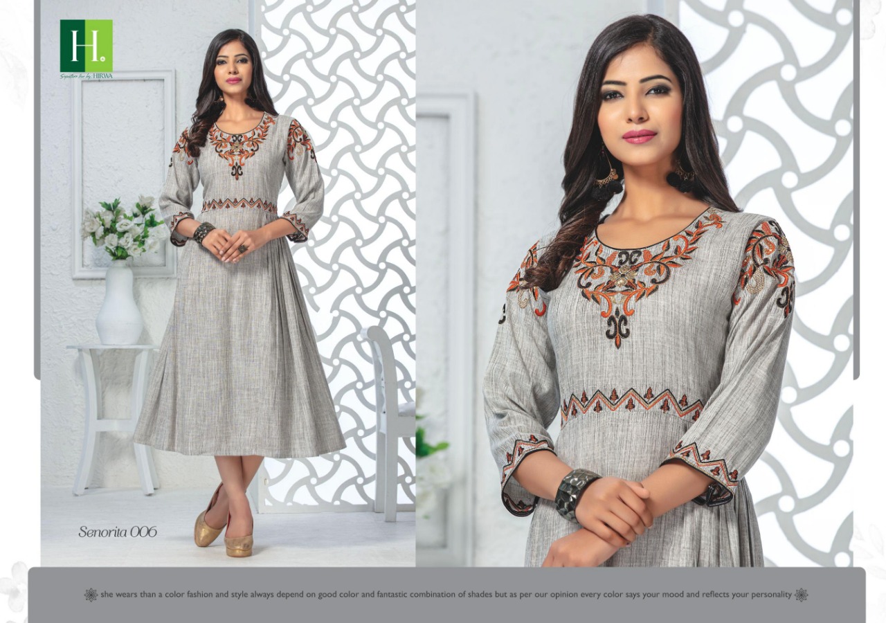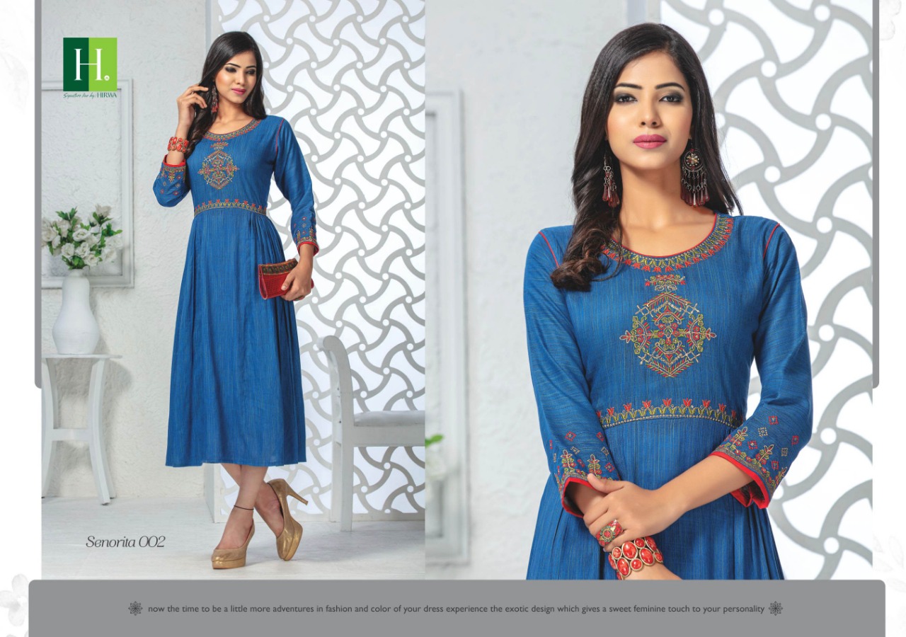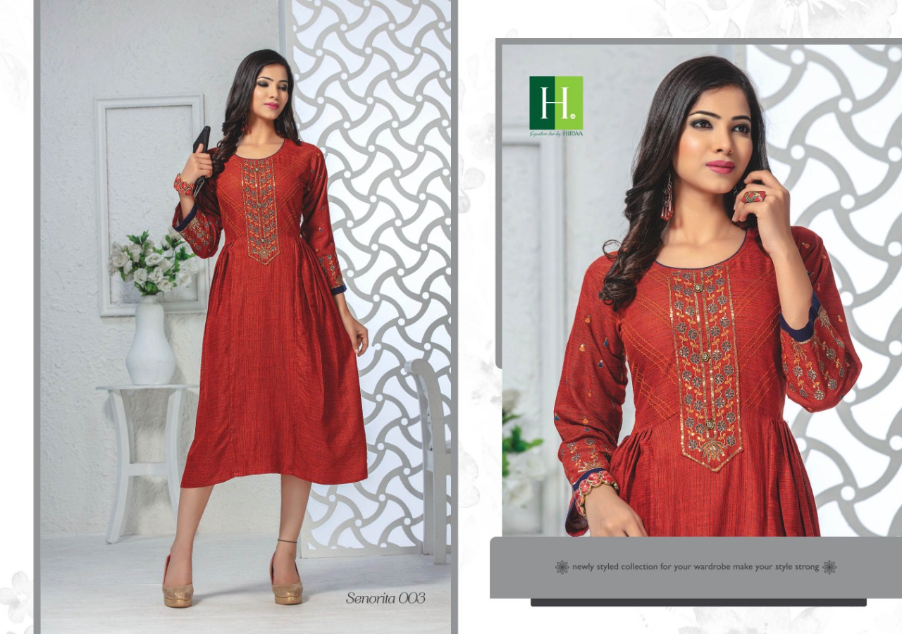 Senorita By Hirwa Fancy Reyon Embroidery Designer Kurti Online Seller