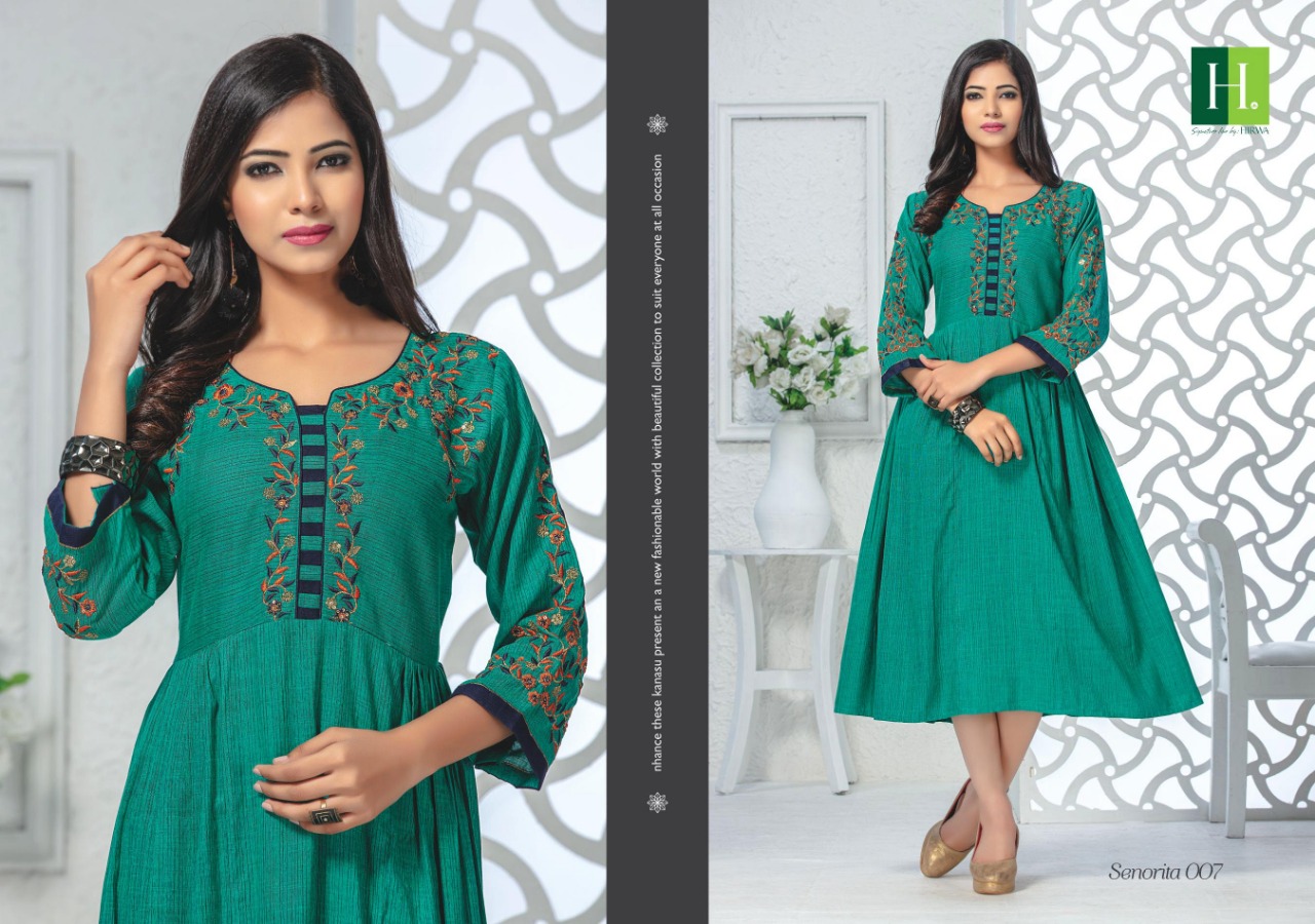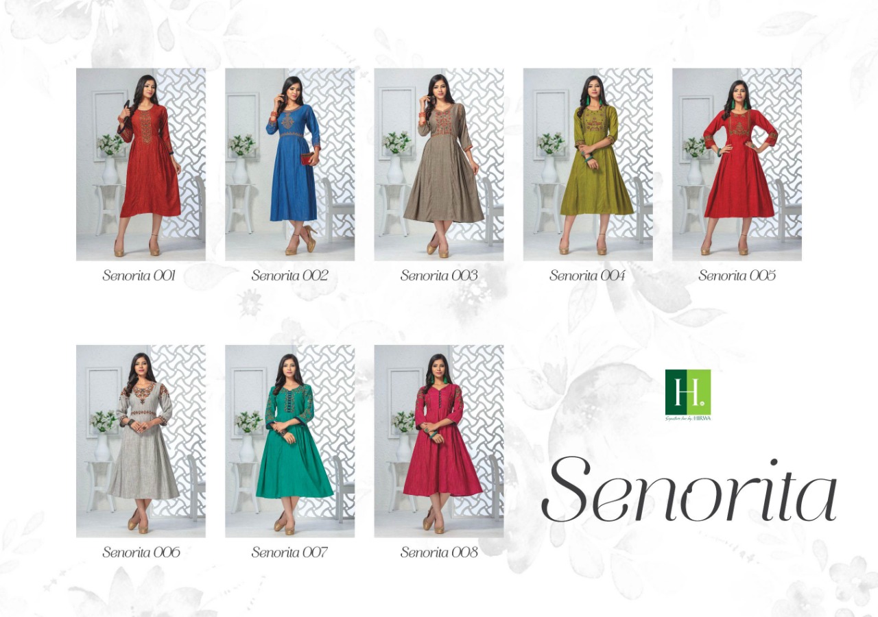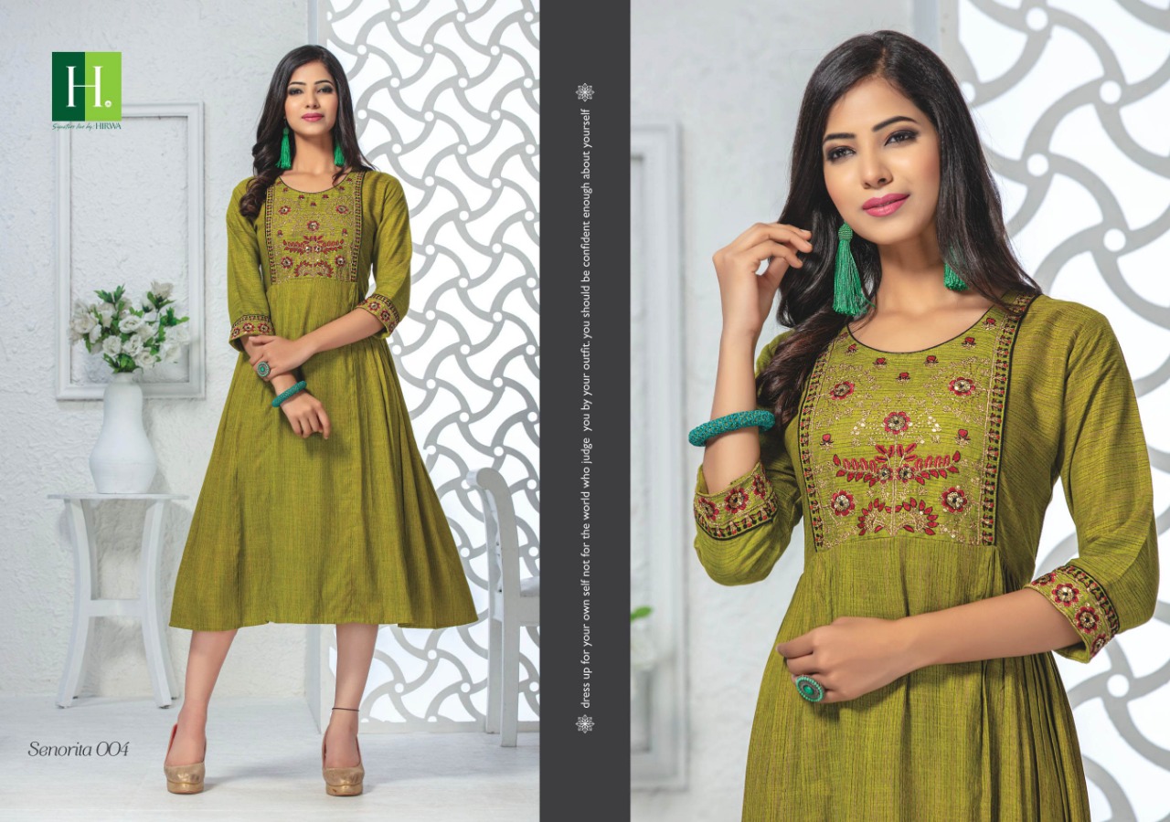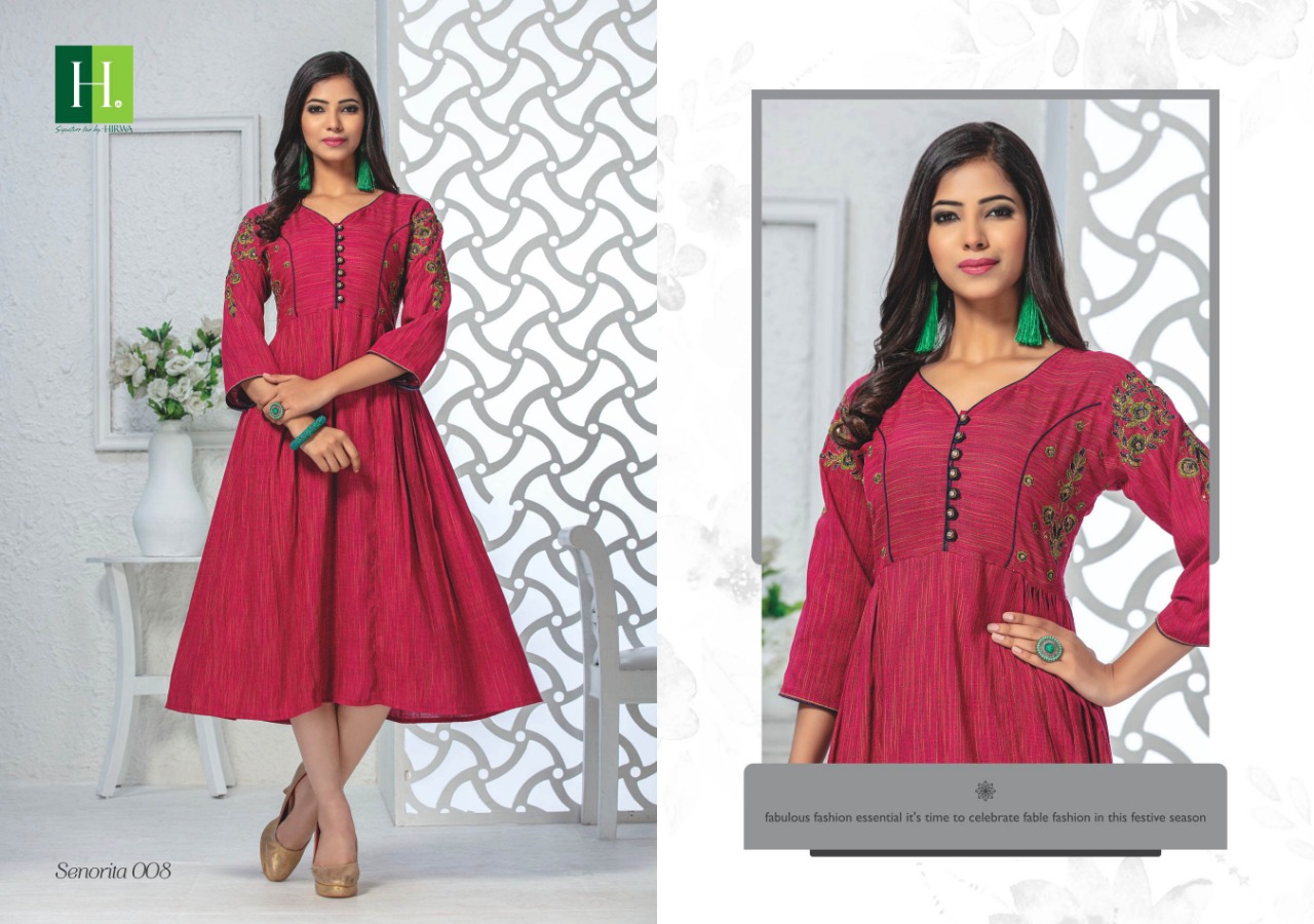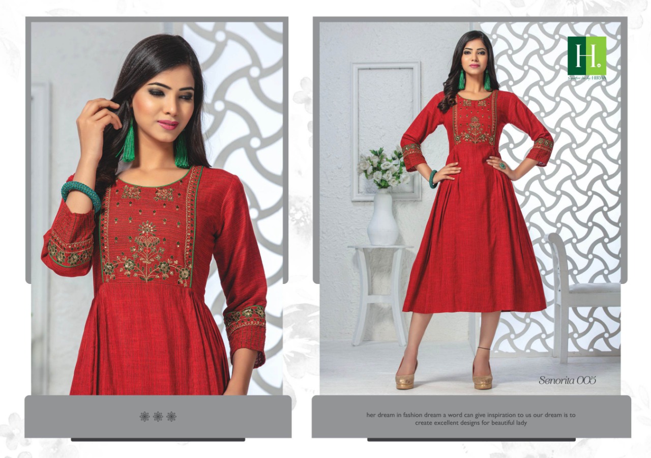 Senorita By Hirwa Fancy Reyon Embroidery Designer Kurti Online Seller