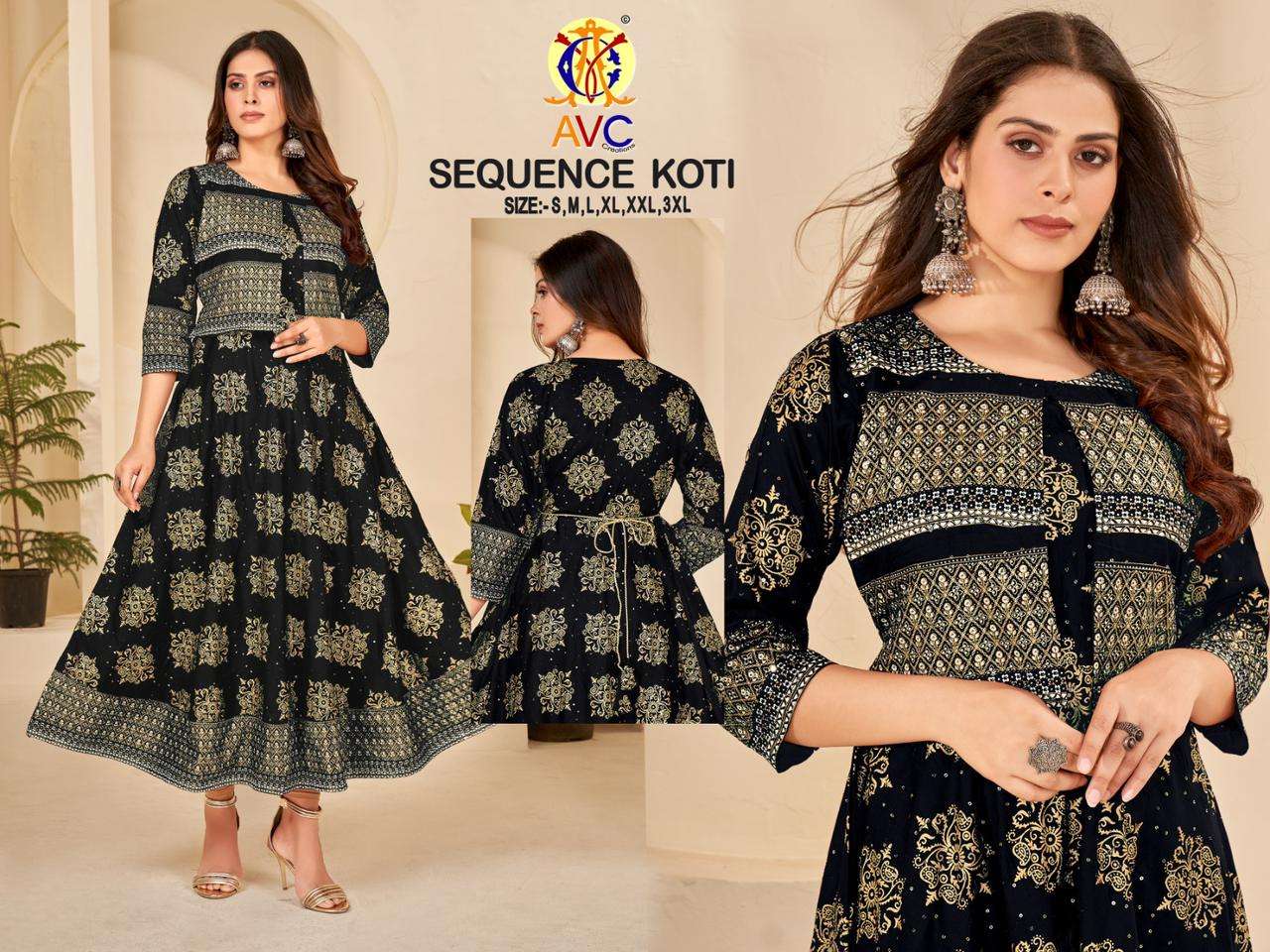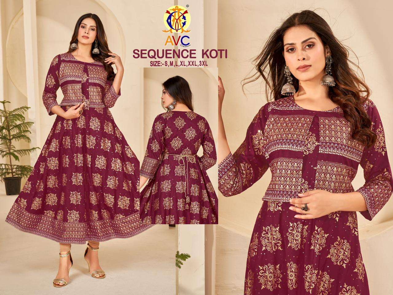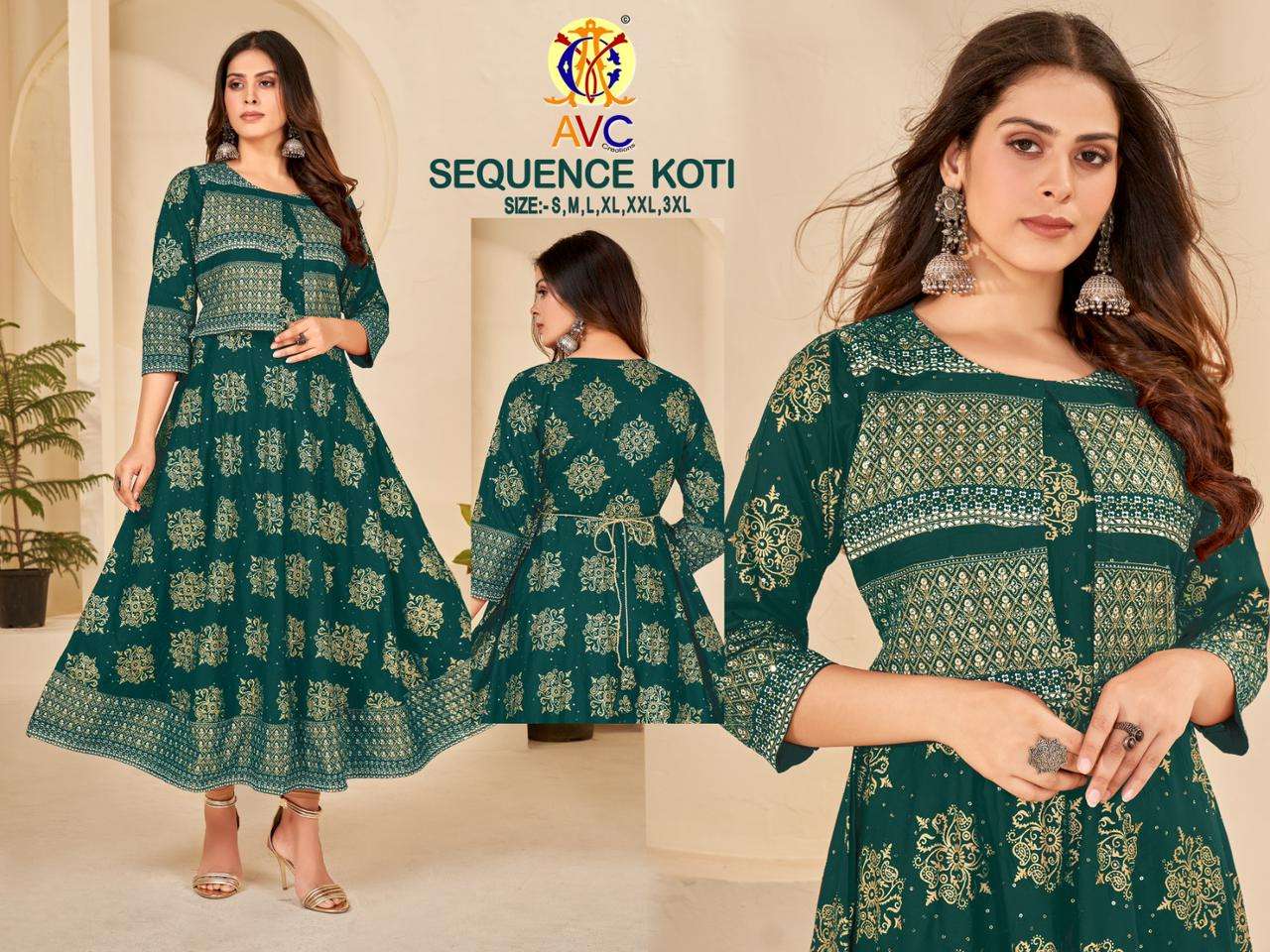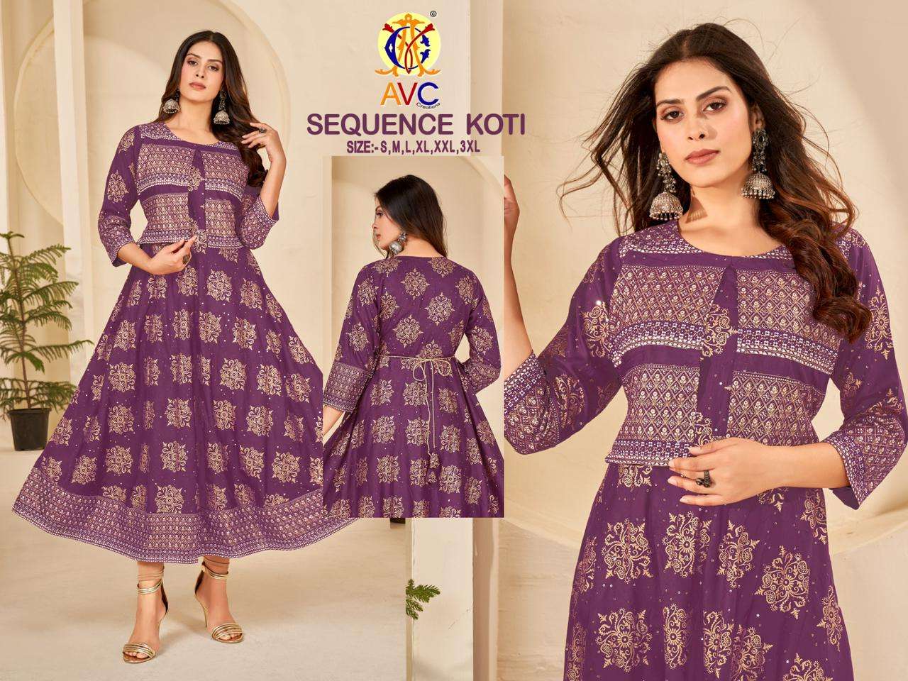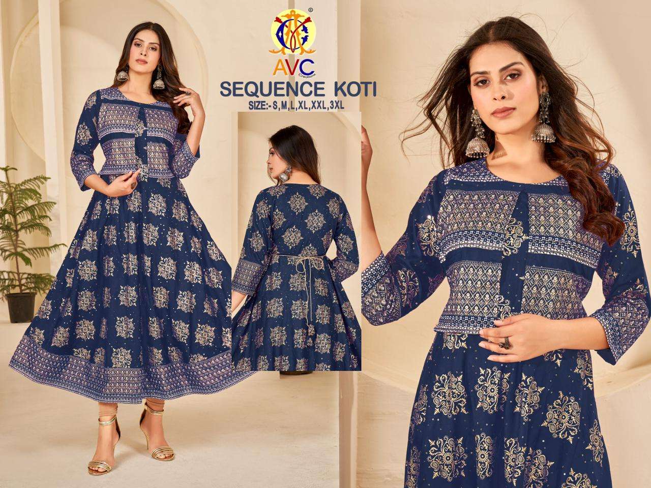sequence koti by avc creation fancy festive wear readymade long gown collection