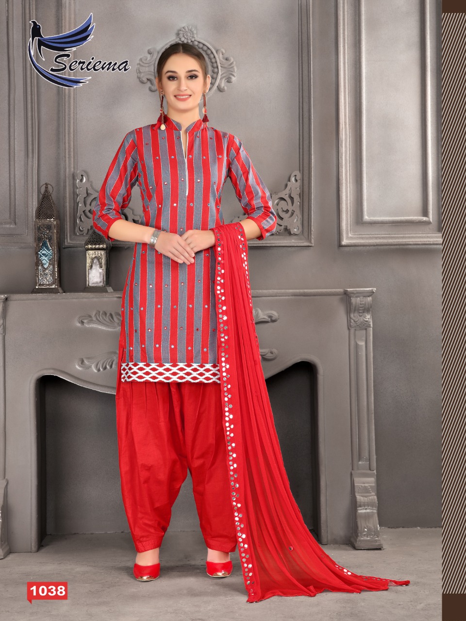 CATALOGUE NAME MUSKAN VOL -2 Brand : SERIEMA® Fabric Top Fabric-: * TOP FABRIC- PURE COTTON WEAVING NATURALLY TWO TONE STRIPES WITH HAND MIRROR WORK Inner - Heavy COTTON Bottam-: *COTTON PATIYALA FULL STICH * DUPPTA-: naznim Duppta with embroidery mirror SIZE : L XL XXL 40 42 44 RATE ₹:- 725 GST Extra Set to set DISPATCH NO:- 16 JAN |