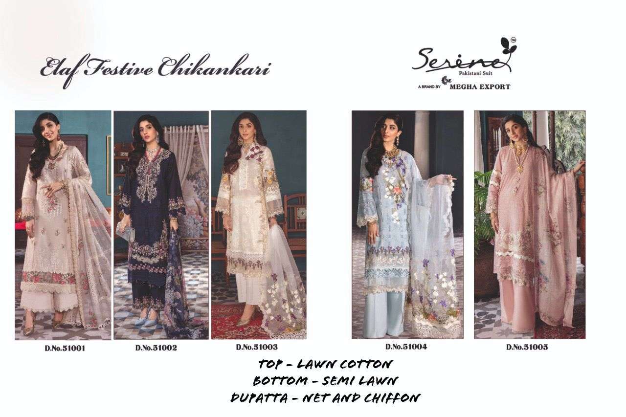 serine elaf festive chickankari lawn cotton pakistani dresses