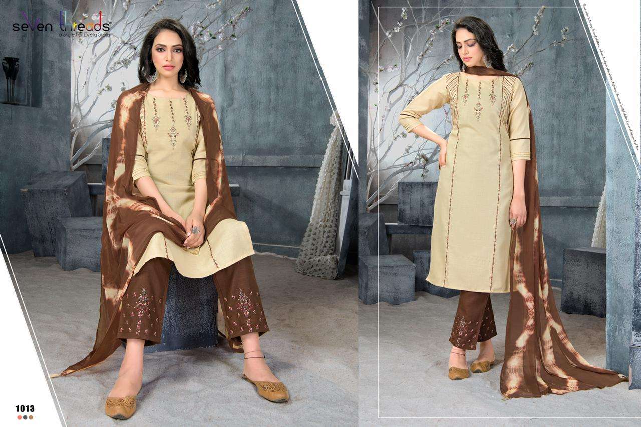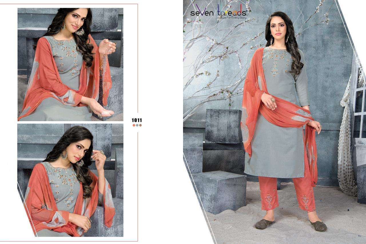 We’re proud to announce the launch of our new catalogue as part of the ongoing evolution of our brand ”SEVEN THREADS” Catalogue name:-PRISHA * 🛍 - 7 Designs *👗Fabric - Top 👚 -Metro cotton slub *🎗Size - M , L , XL , XXL , XXXL *🔸Length - 46+ *🧶Work - Top 👚 - Classic single thread Embroidery work ✅Type - Full stitched 💰- 691/- Rs |