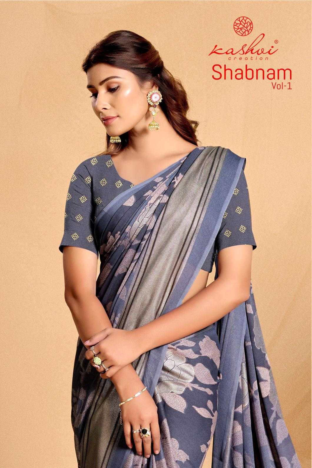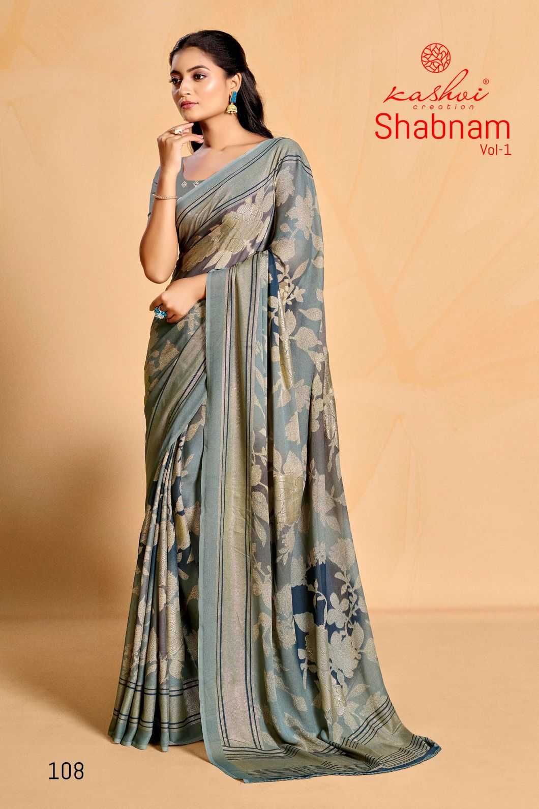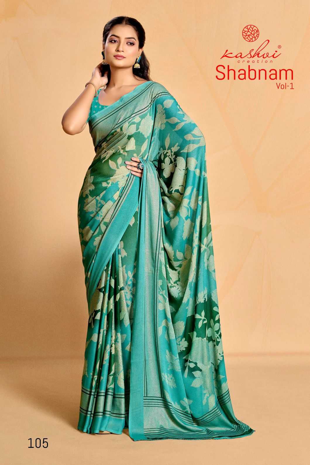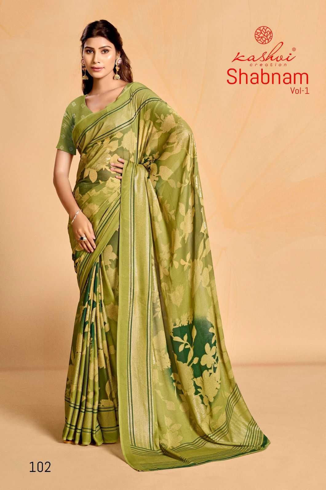 shabnam vol 1 by kashvi creation dull moss printed saree wholesaler