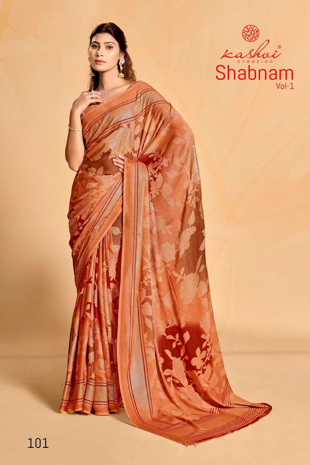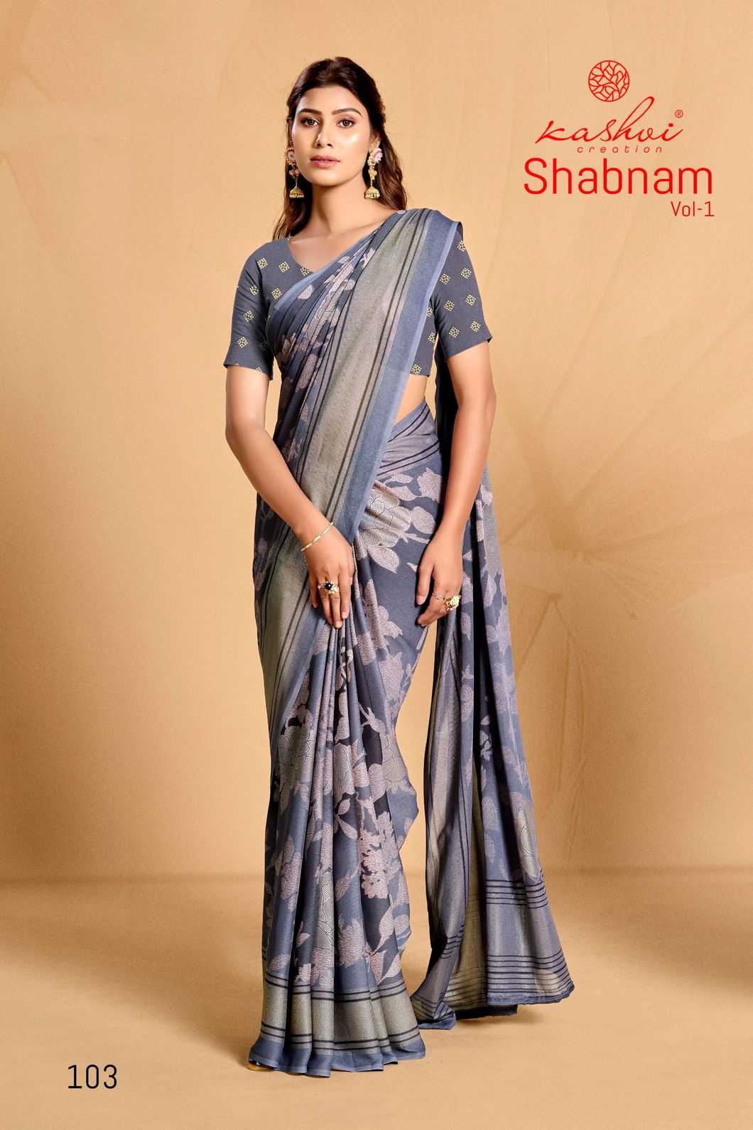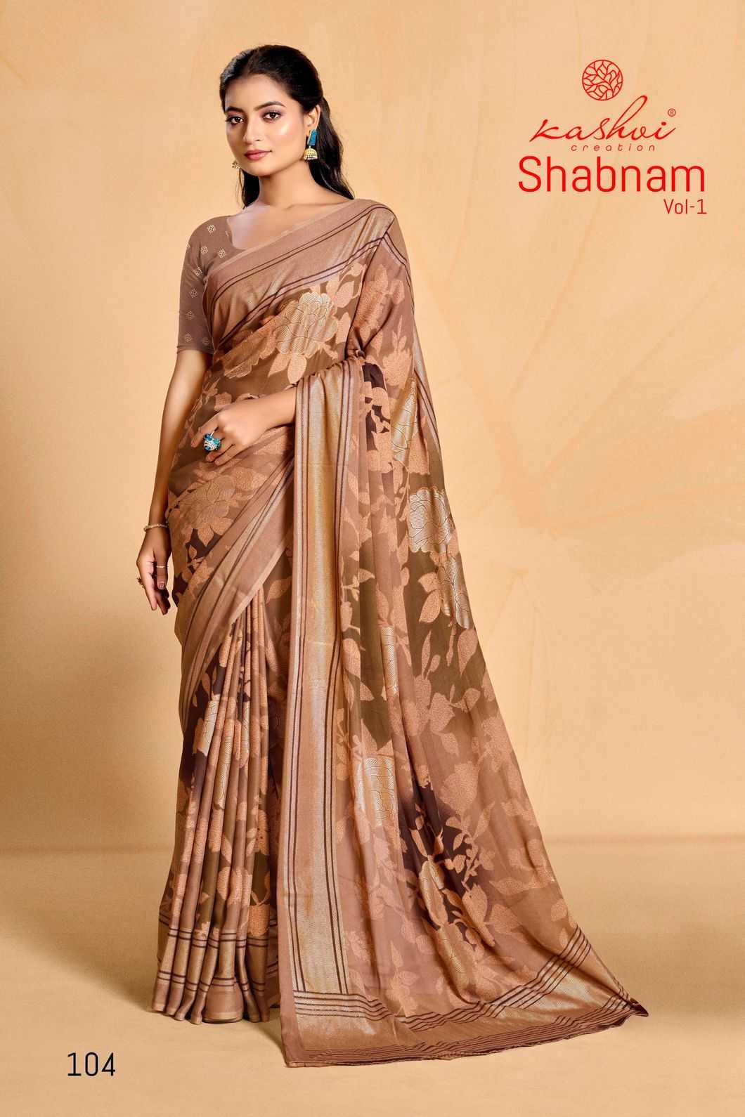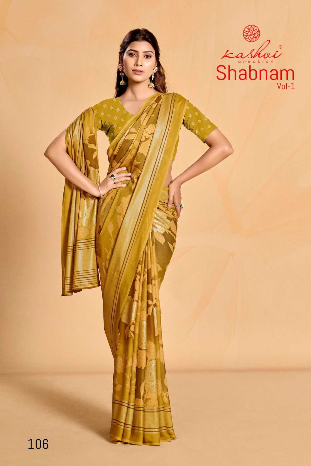 shabnam vol 1 by kashvi creation dull moss printed saree wholesaler