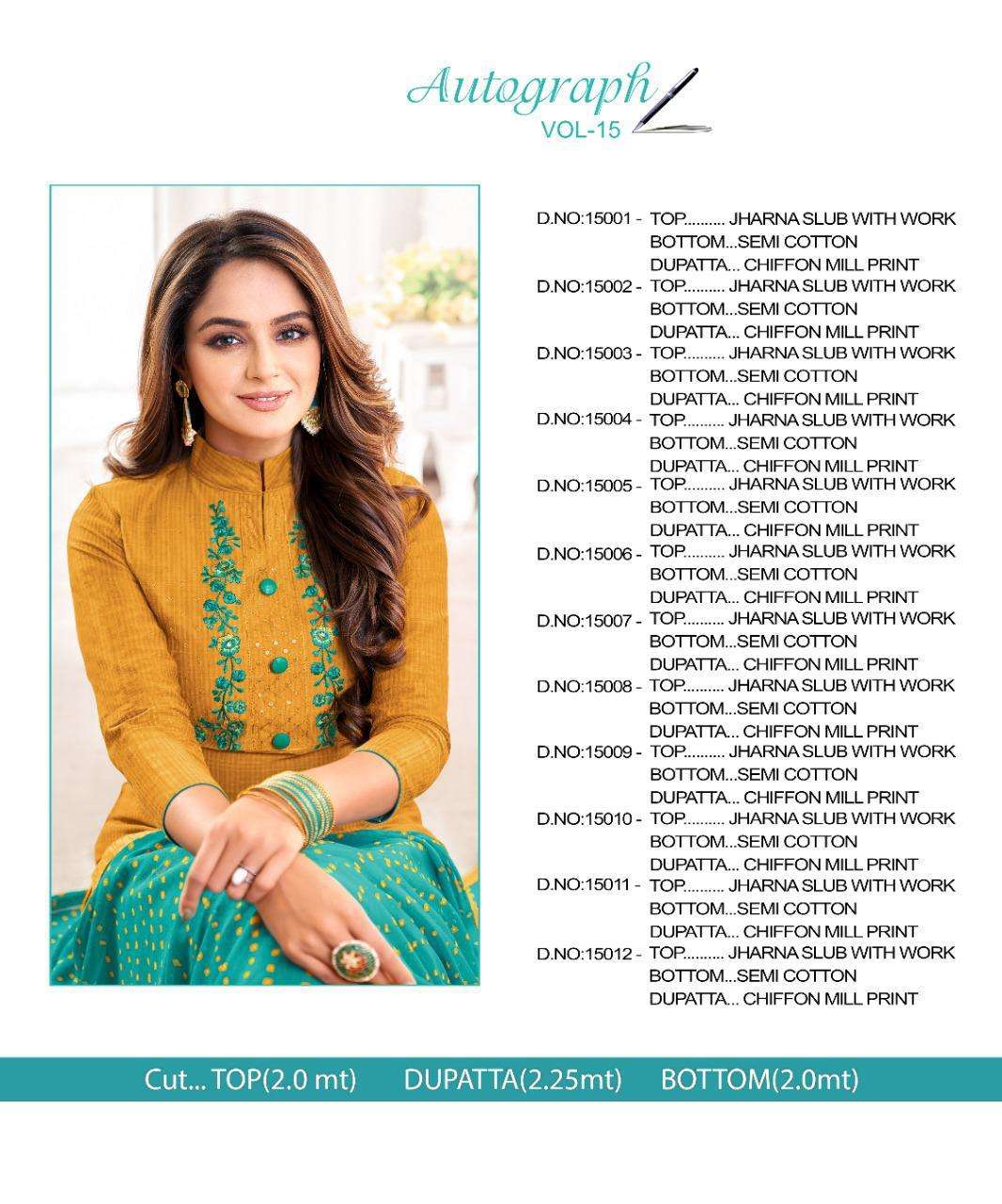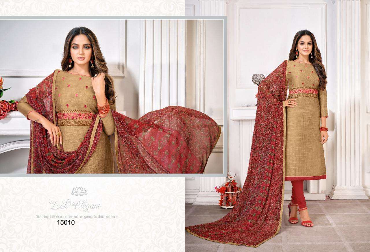shagun lifestyle autograph vol 15 slub lining with embroidery dress materials