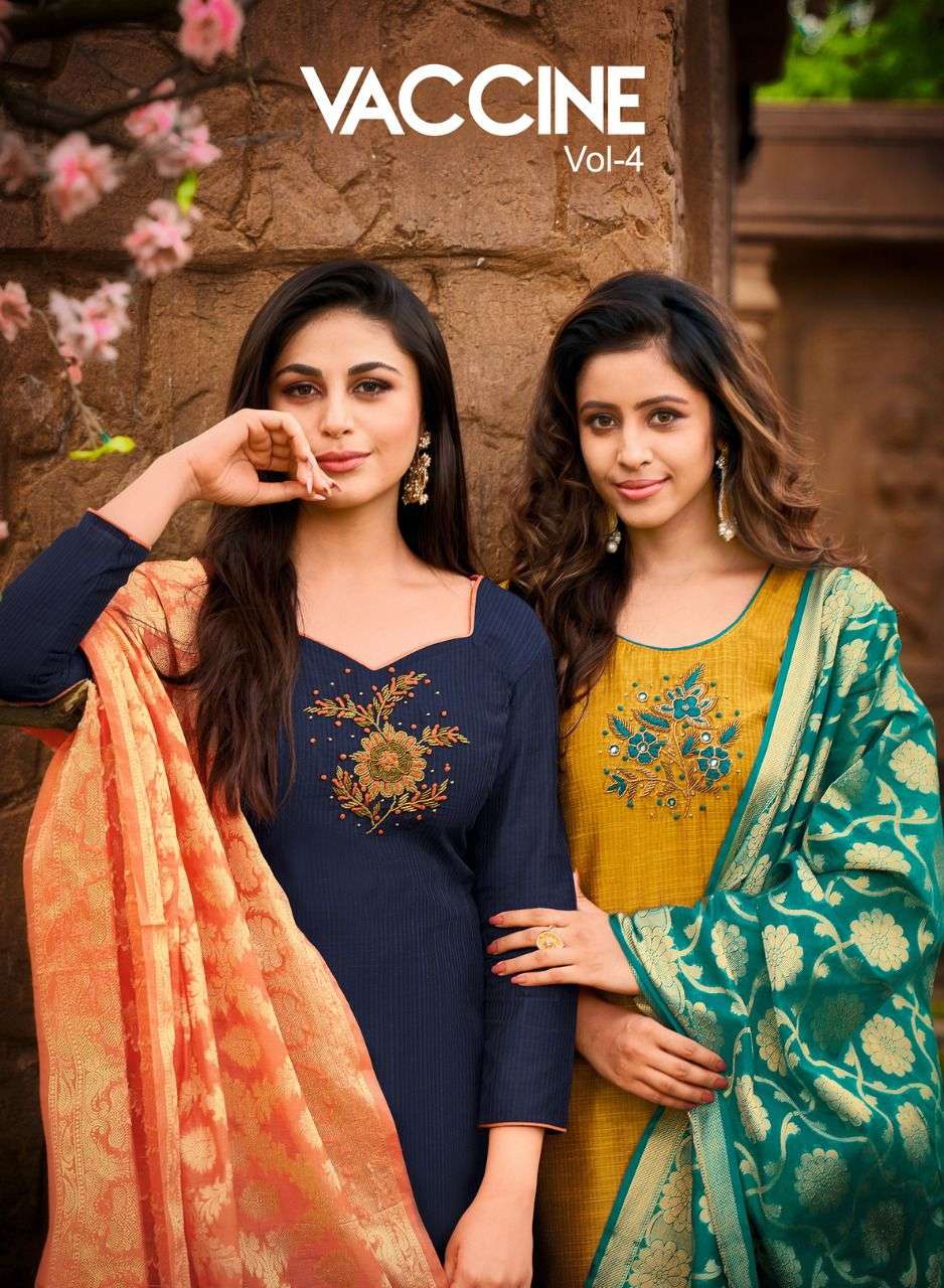 BRANDÂ - Shagun. VACCINE - volume 4 Top- SULBY SILK (2:40) Bottom- Cotton (2) Dupatta- Banarasi jeq. Pcs.-12 Rate- 675 per Pcs . Set to set GST 5 Percent Extra. Delivery from today |