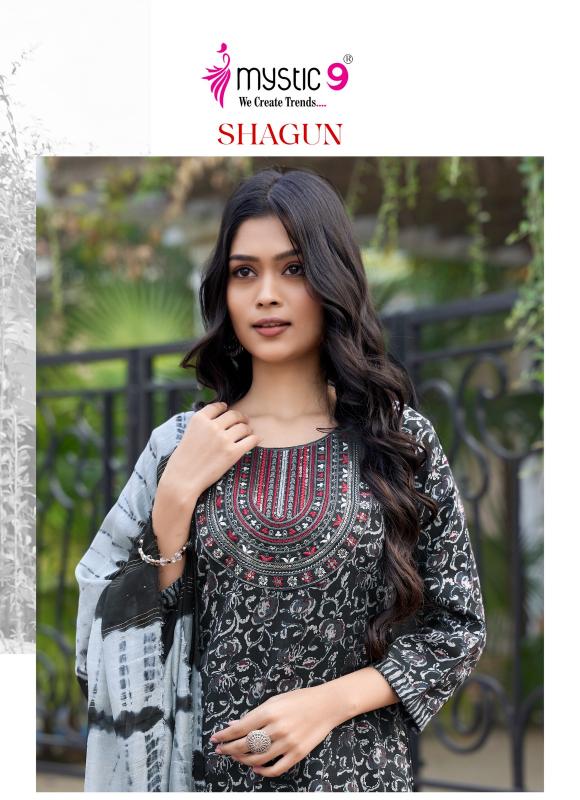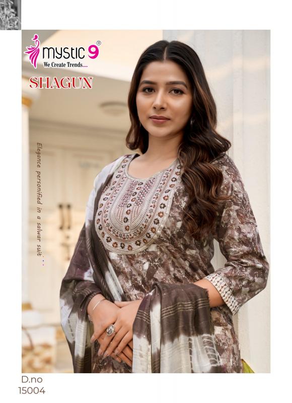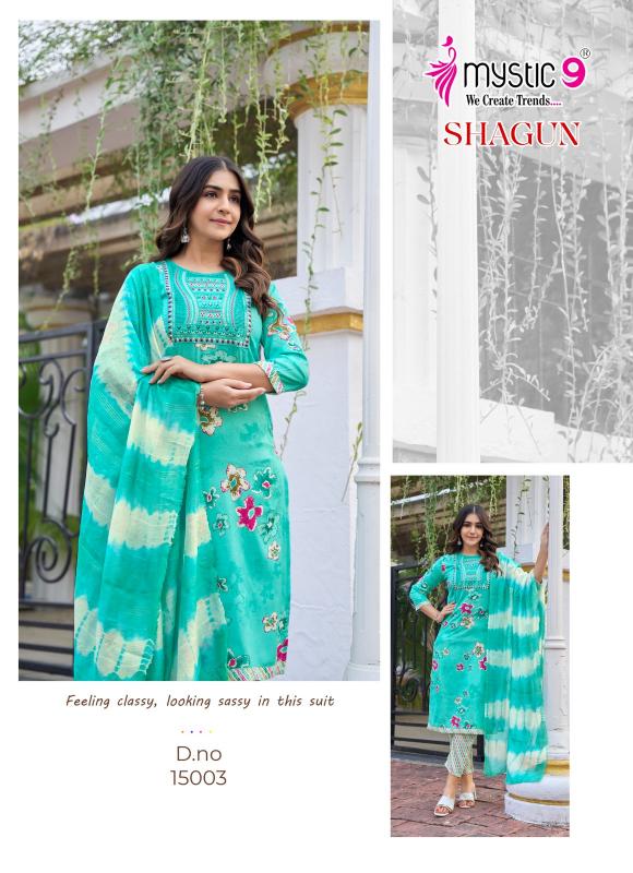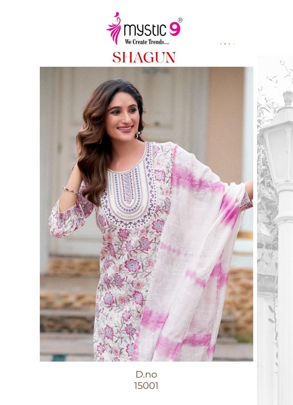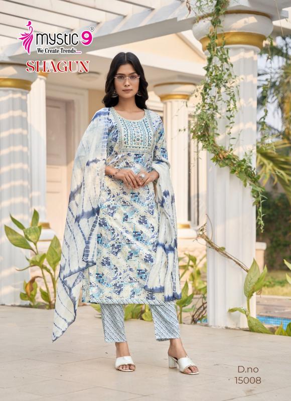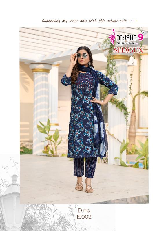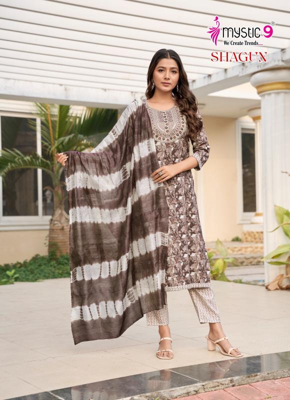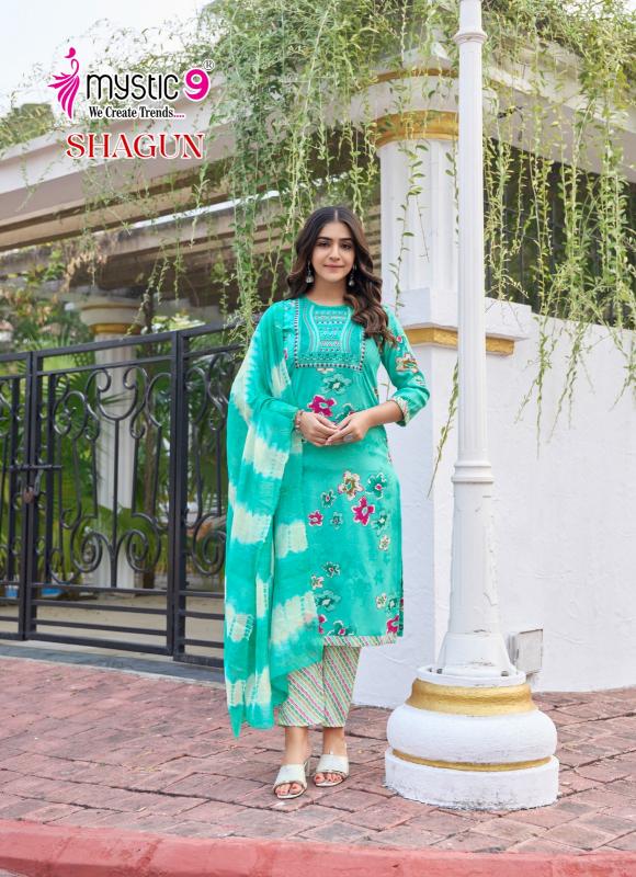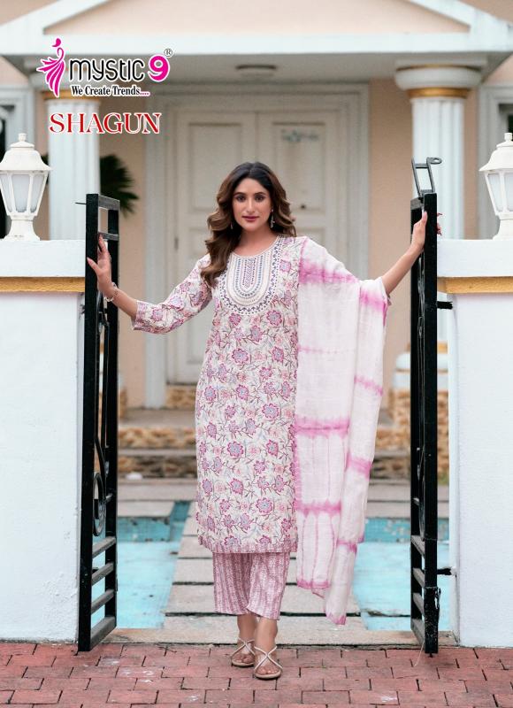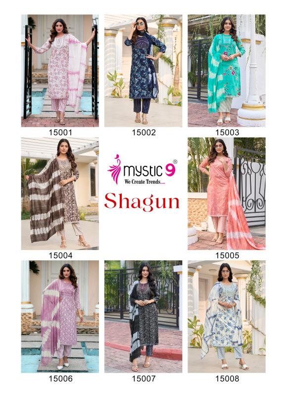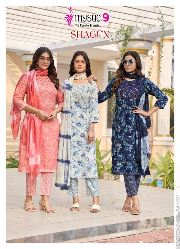shagun vol 15 by mystic9 rayon capsule print readymade stylish 3pcs dress