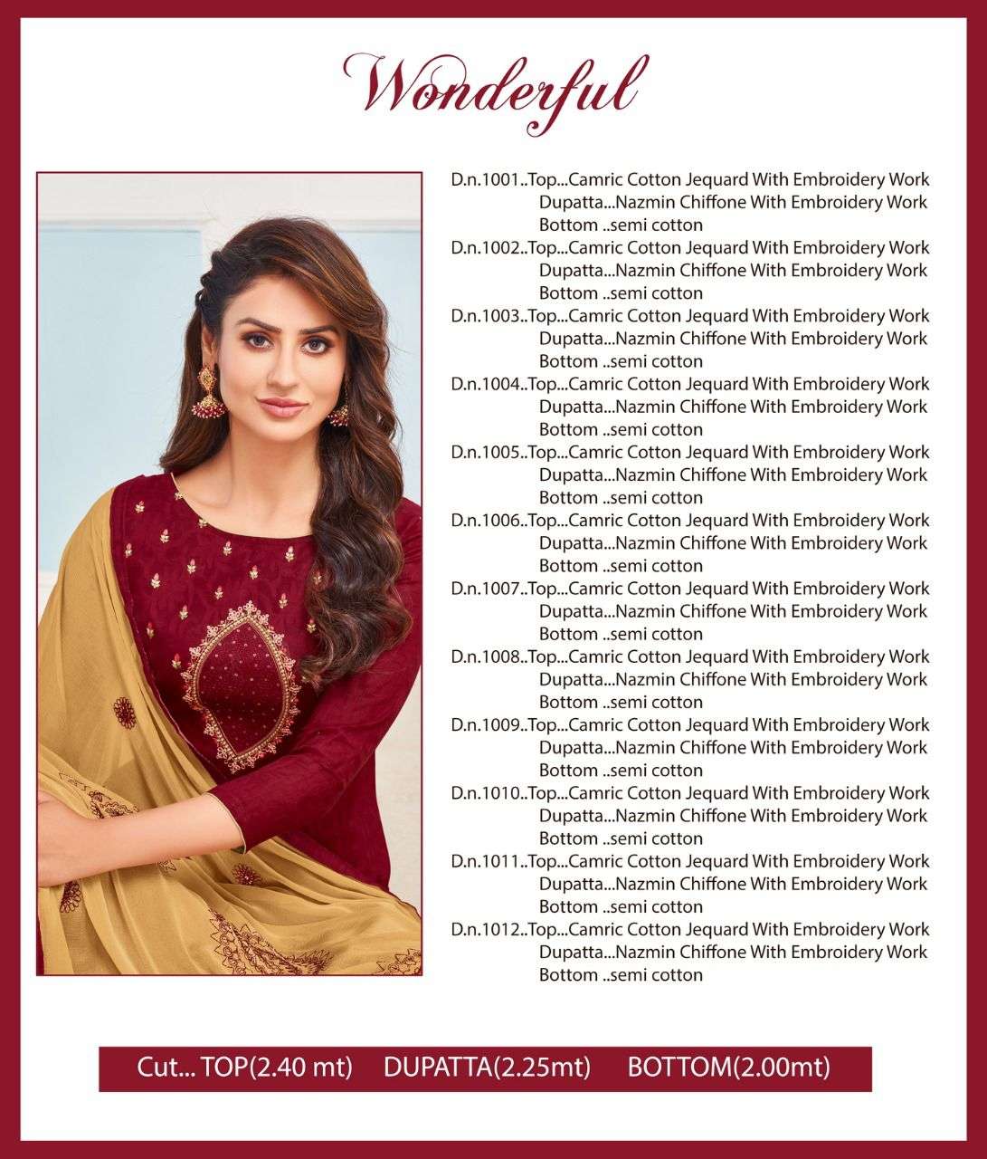 Brand - Shagun . WONDERFUL Top- cambric jequard with work (2:40) Bottom-cotton (2) Dupatta- Nahmeen with work(2:25) Pcs.-12 Rate- 599/- per pcs. Set to set. Delivery from tomorrow BOOK YOUR ORDER NOW |