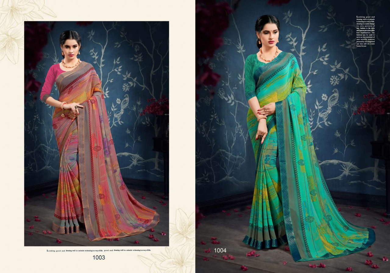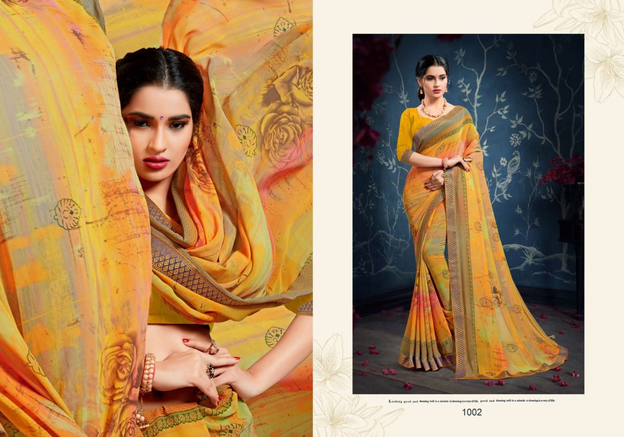Shailu vol. 1 Brand:- MANSAROVER FASHION Rate:- 525/- _Fabric:- Weightless digital padding 8 kg with banarsi less American blouse Total Designs:- 06 _Packing pcs :- set to set Matching :- Eight COLOR Eight designh 6.30 Delivery from tomorrow |
