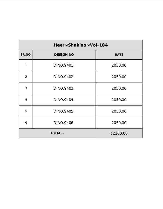 shakino vol 184 by heer kimora 9401-9406 occasion wear pakistani unstitch 3pcs dress