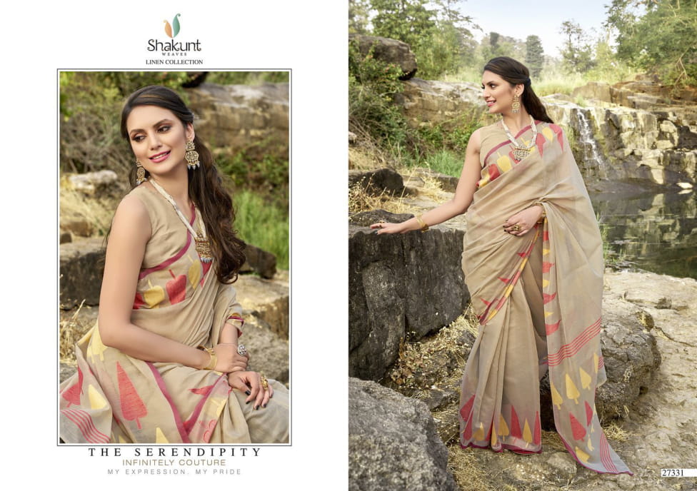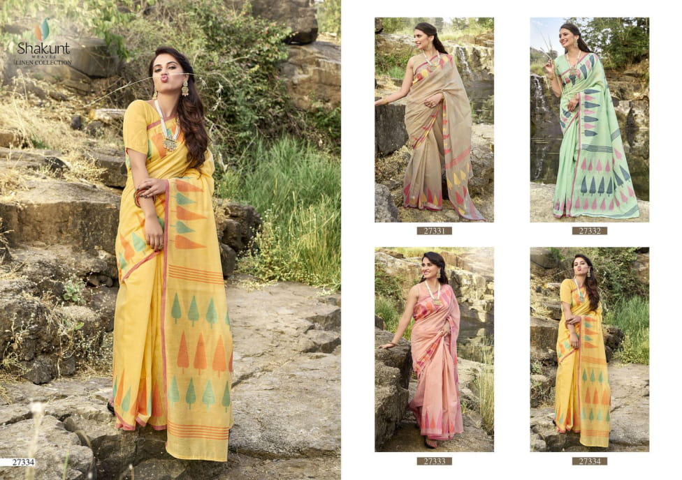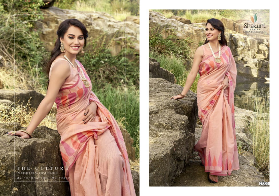 Shakunt Launch Mangalmurthi Linen Weaving Stylish Look Saree Collection