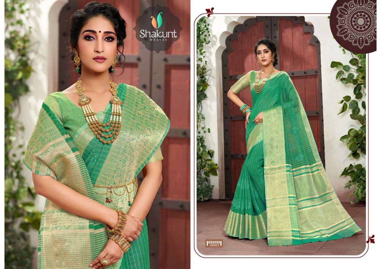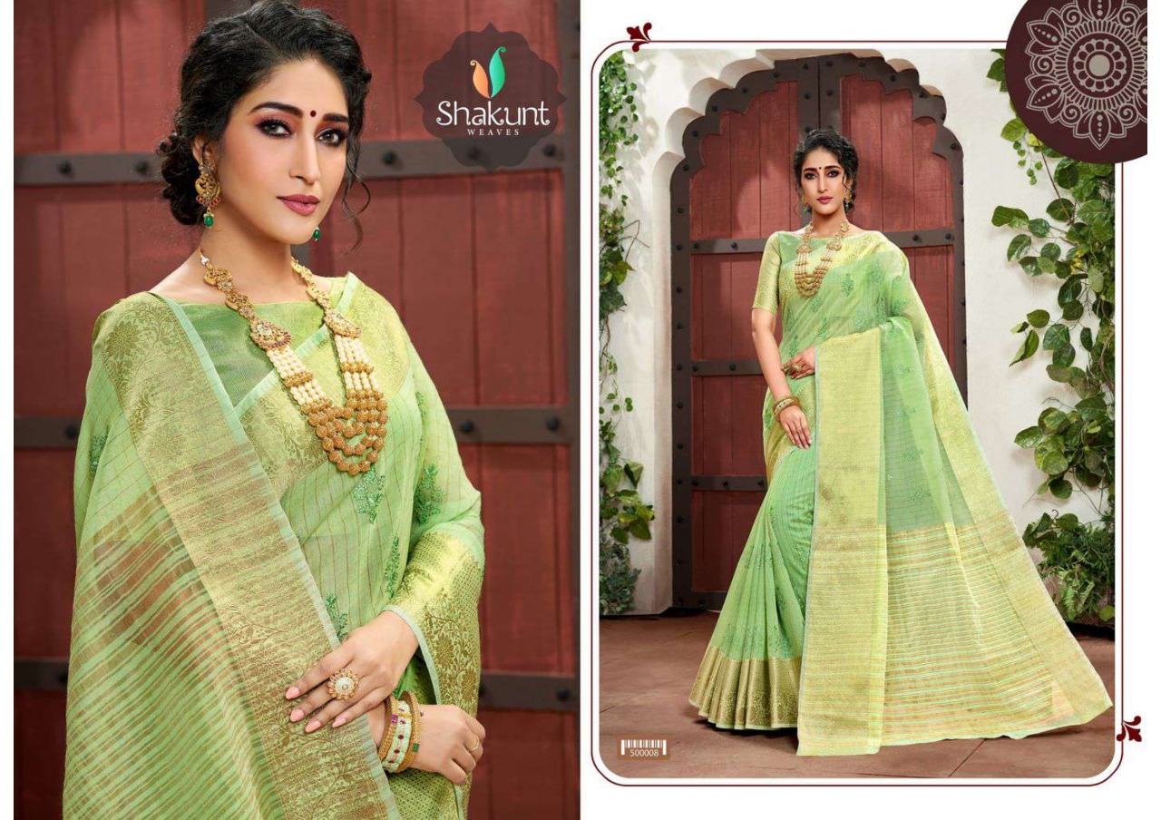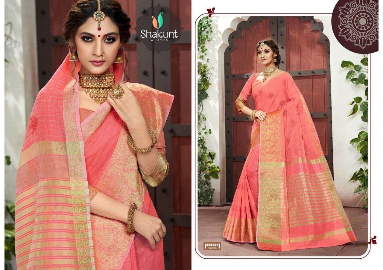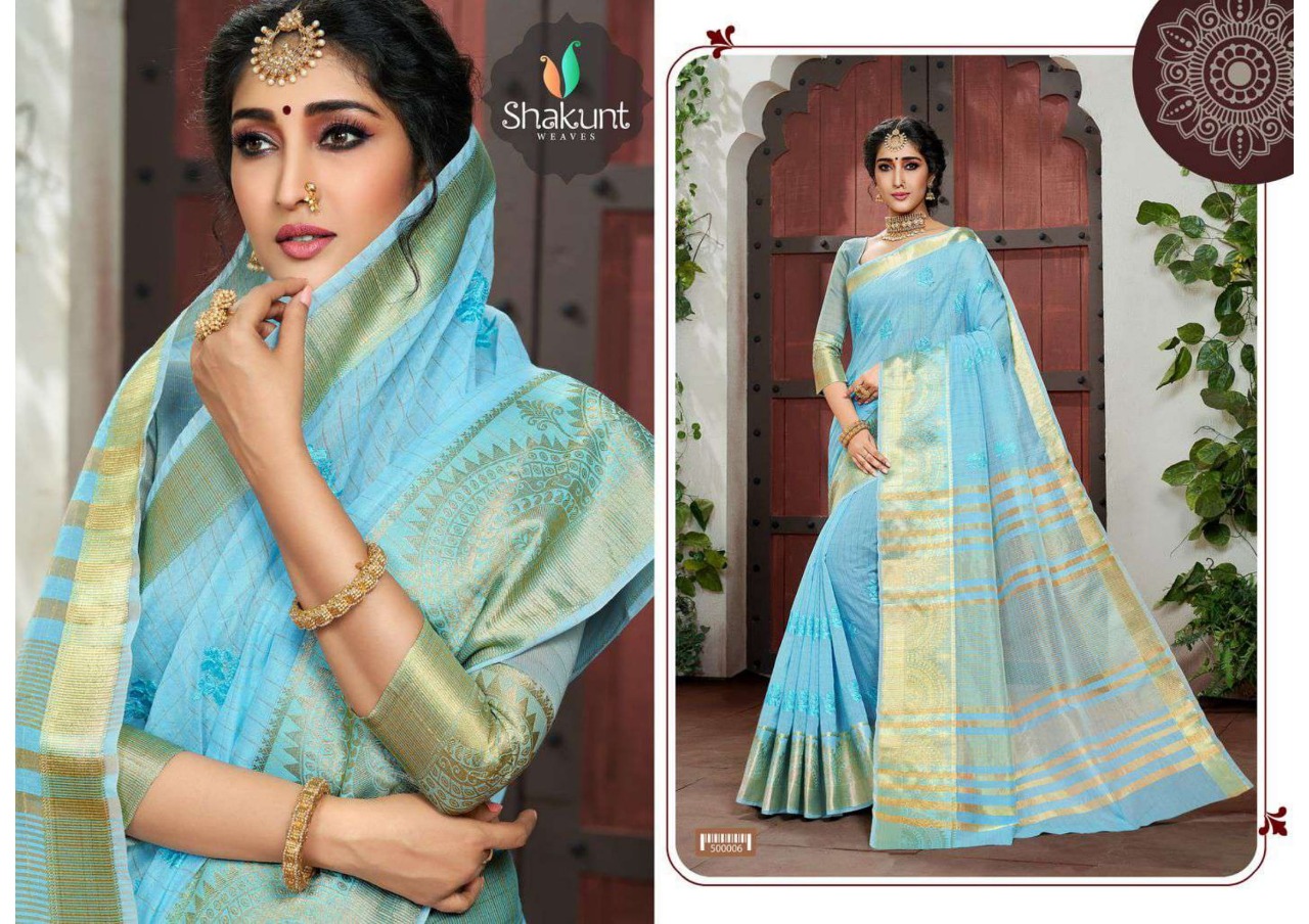 Shakunt Sarees Presents Latest Collection Launched on 14-10-2019. Presenting Beautiful collection of 8 PCS with Unstitched .