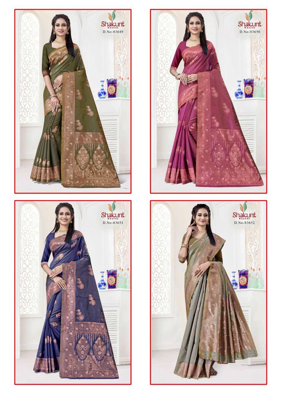 Shakunt Sarees Presents Latest Collection Launched on 03-11-2022. Presenting Beautiful collection of 4 PCS with Unstitched .