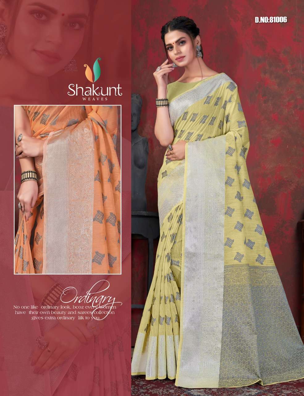 Shakunt Sarees Presents Latest Collection Launched on 03-08-2022. Presenting Beautiful collection of 6 PCS with Unstitched .
