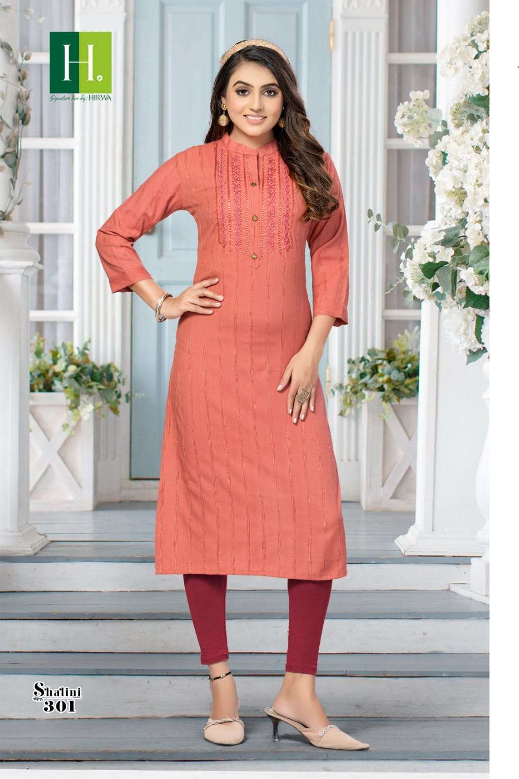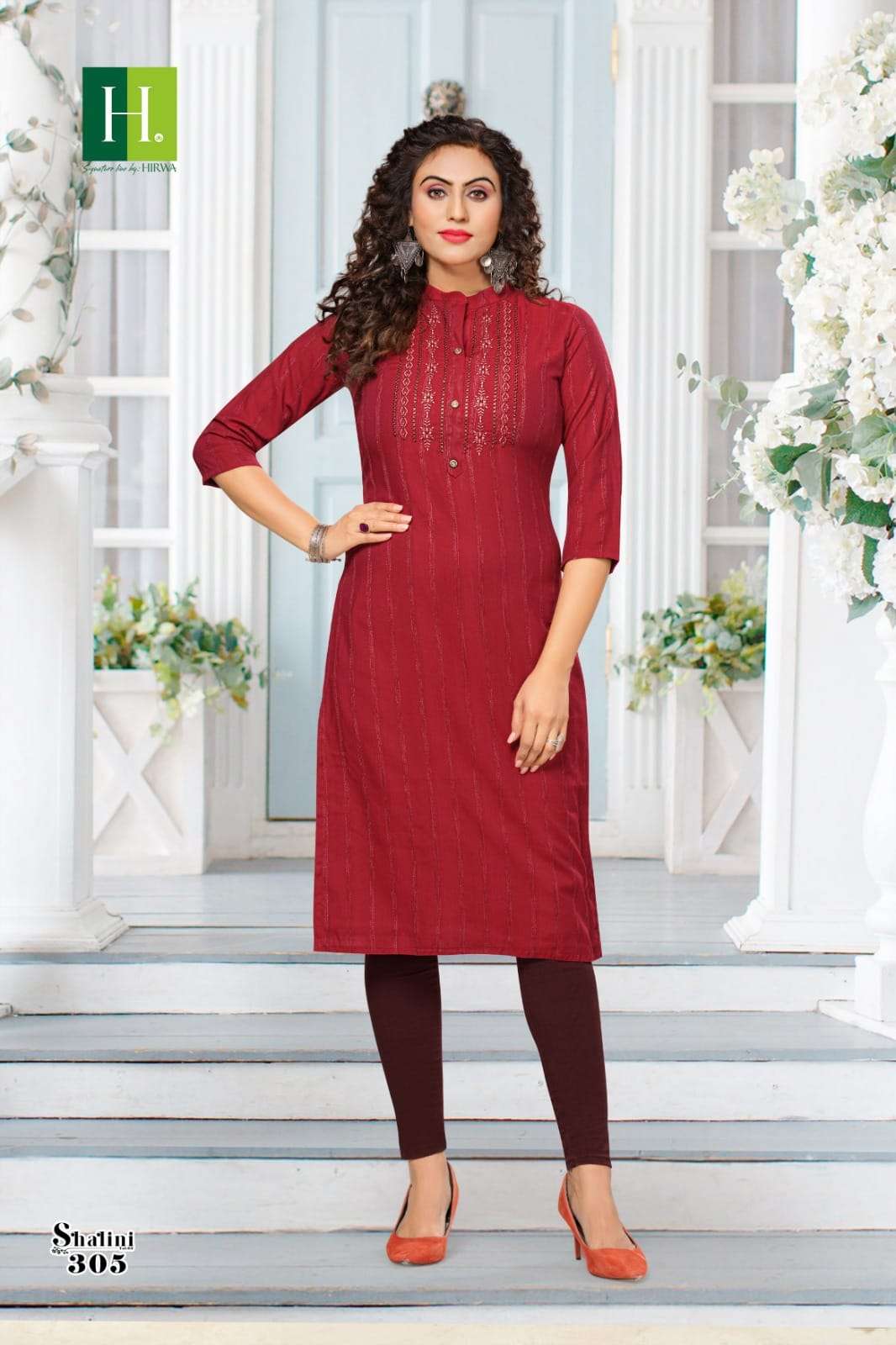 shalini vol 3 by hirwa readymade rayon straight kurti with embroidery work and buttons