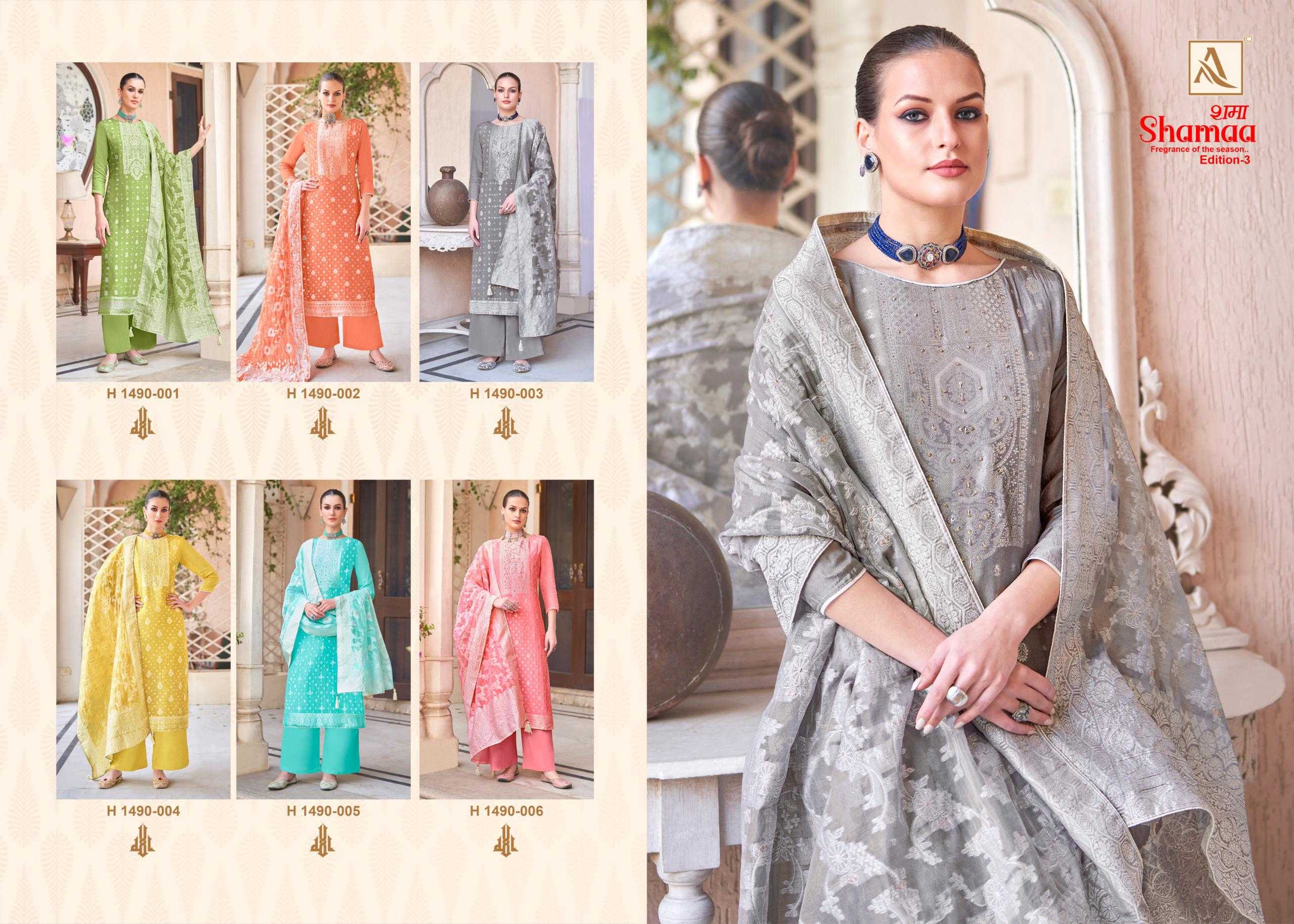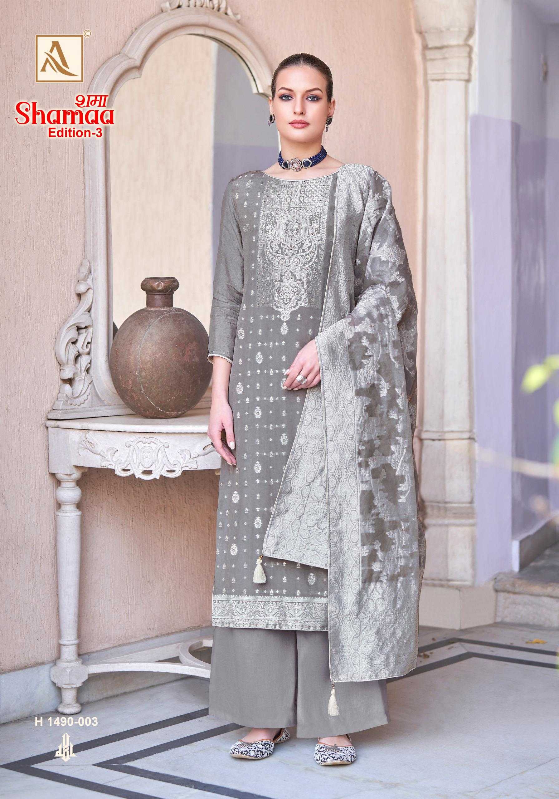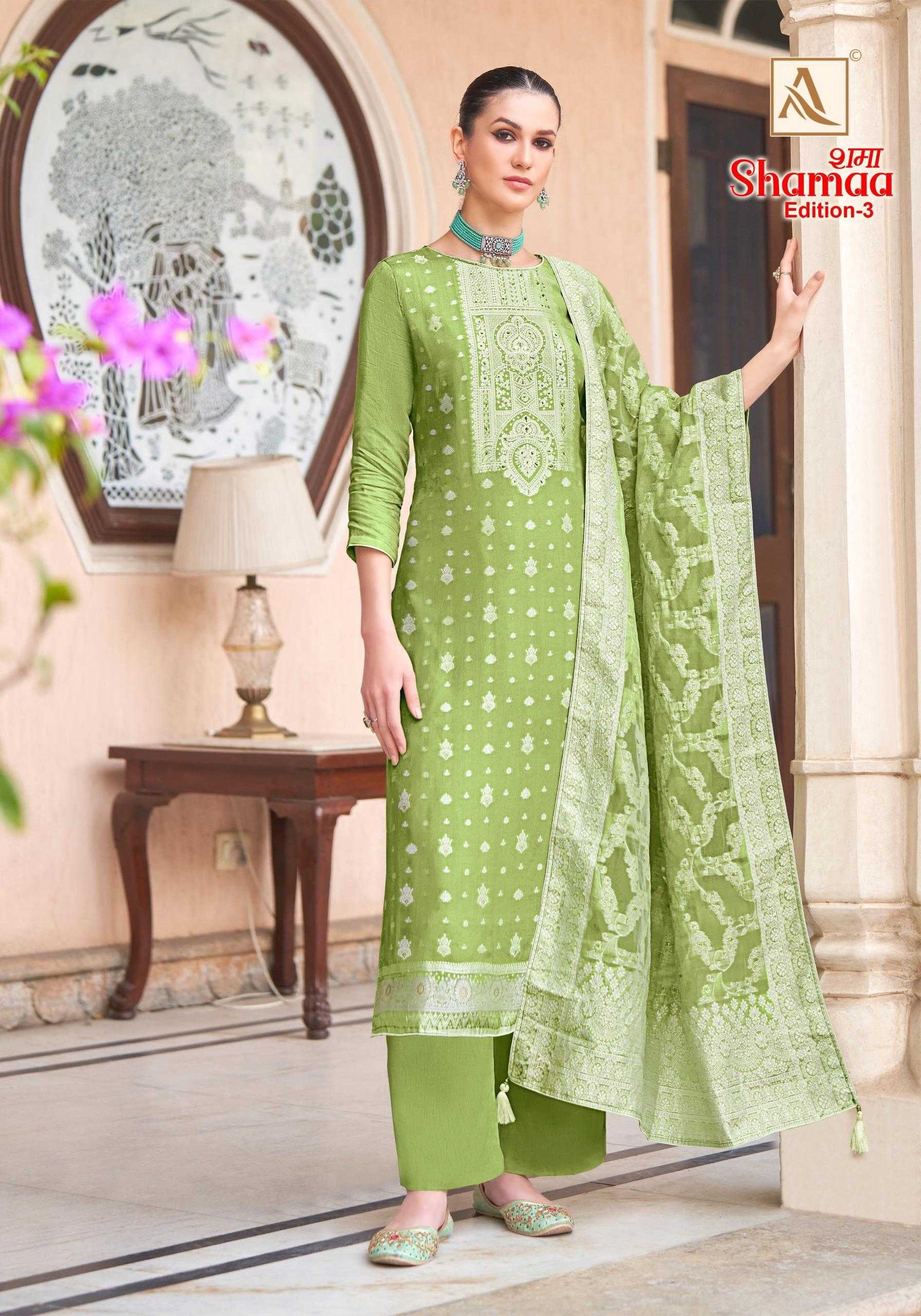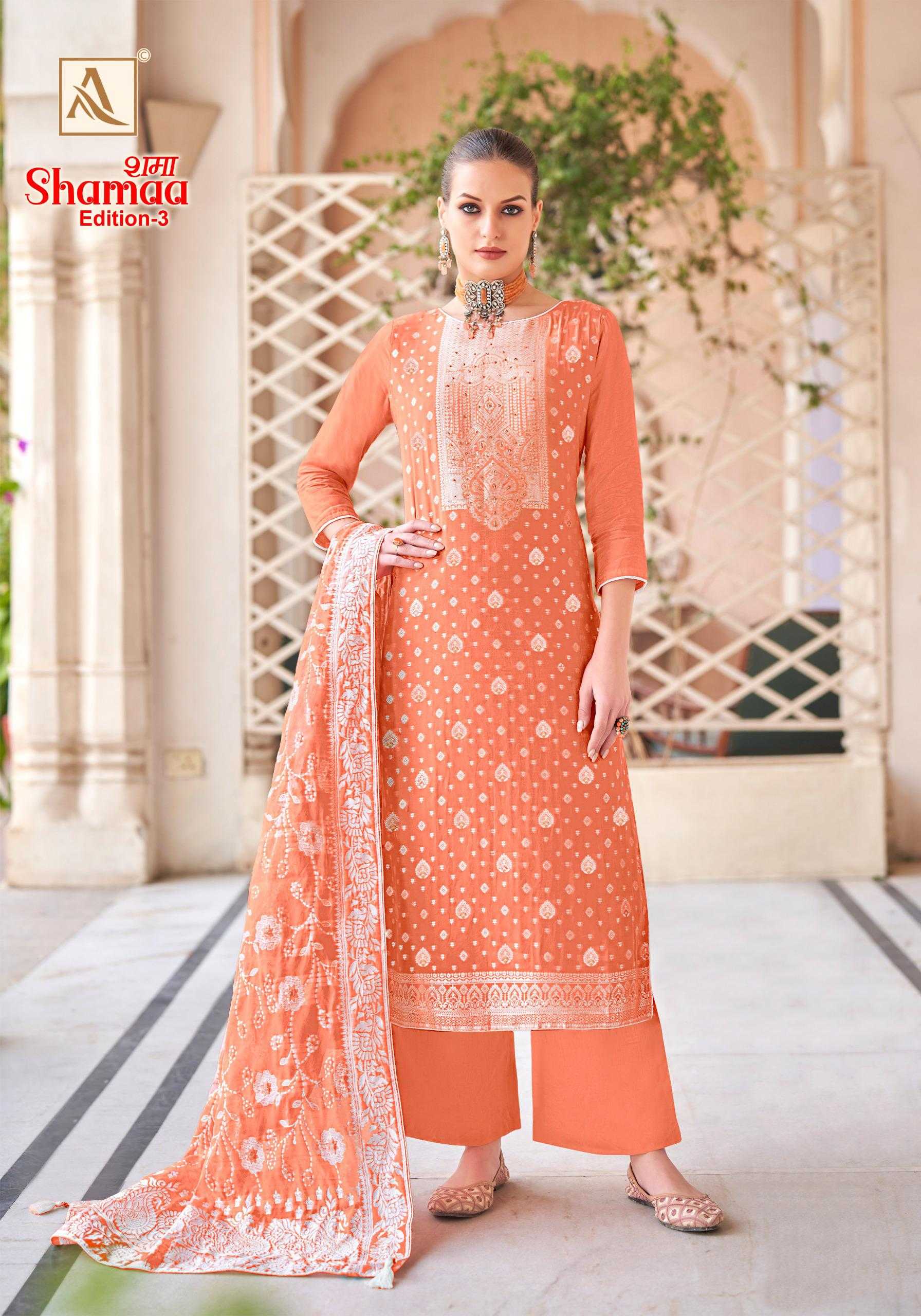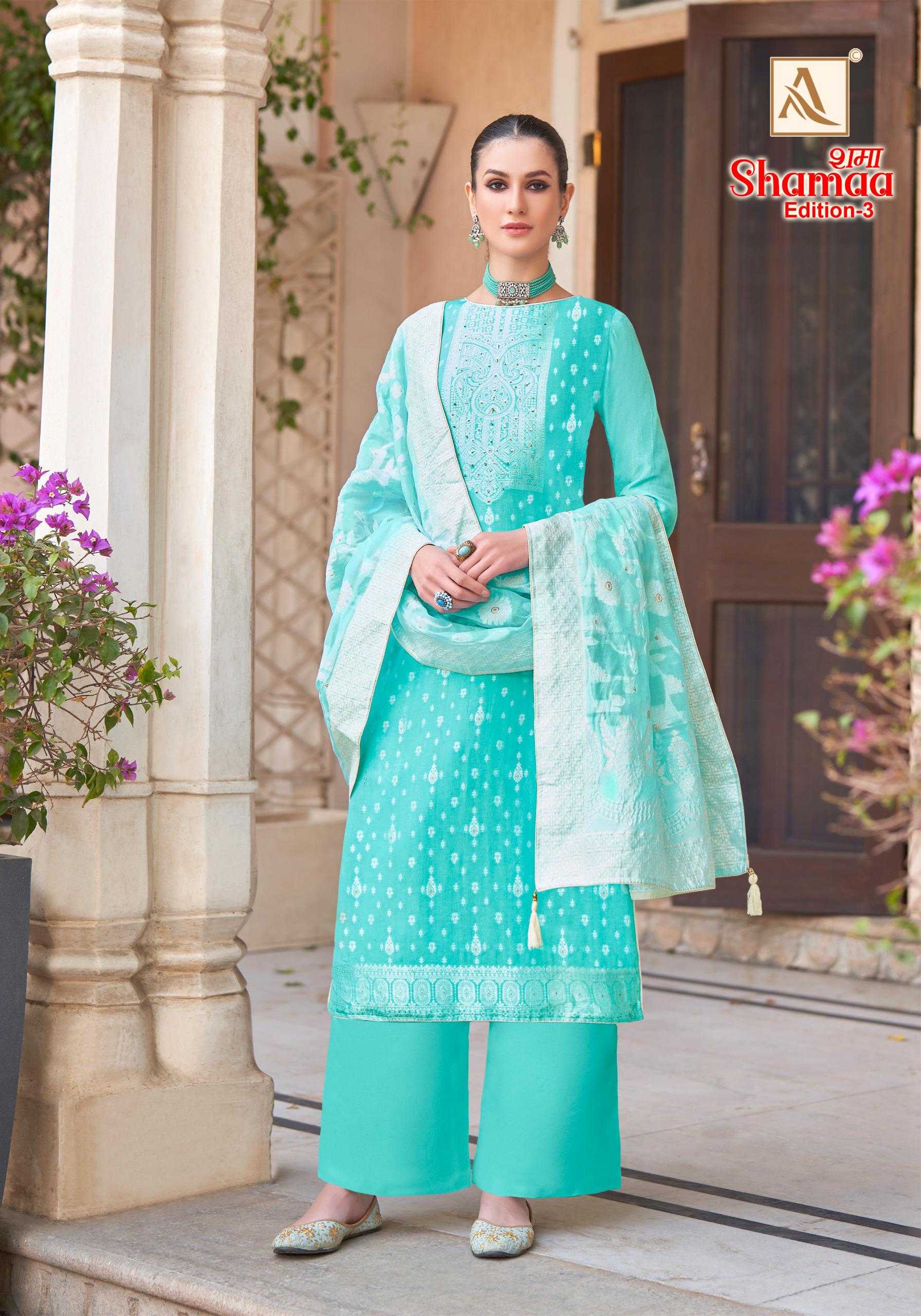 shamaa vol 3 by alok suits viscose jacquard designer 3pcs suits