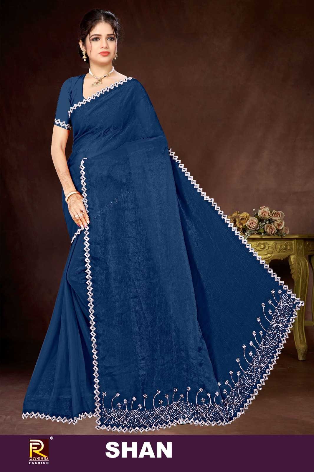 SHAN BY RANJNA SAREE FRENDY FABRICS JARKHAN DIAMOND WORK FANCY SUPER HIT COLLECTION SAREES