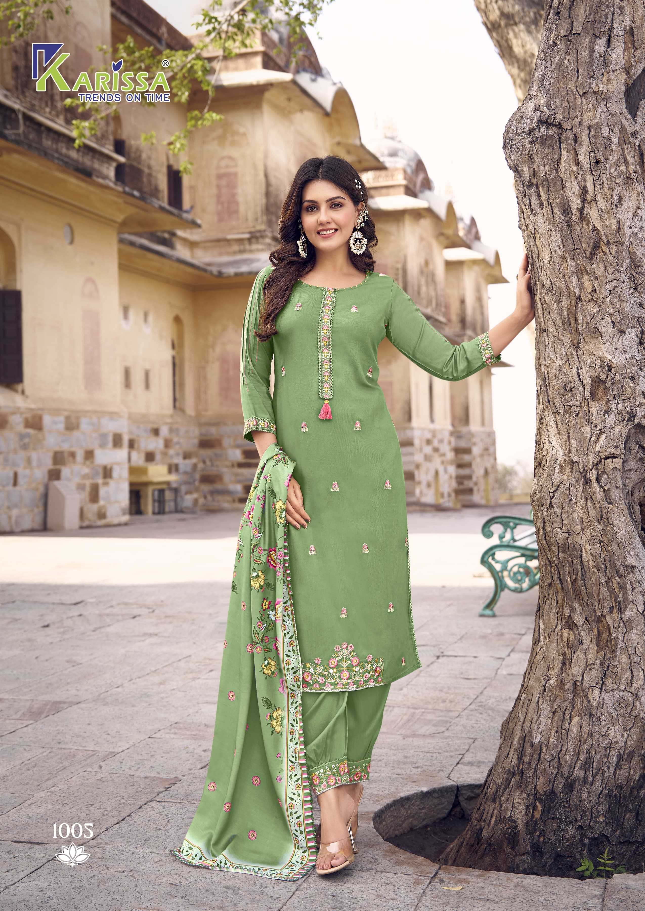 SHANAYA 3 PCS CONCEPT WITH LIVA TAG Brand : KARISSA Length top :46" Rate: 960/- +5% GST CLASSY AND FABULOUS BOUTIQUE COLLECTION BOOK YOUR ORDER FAST |