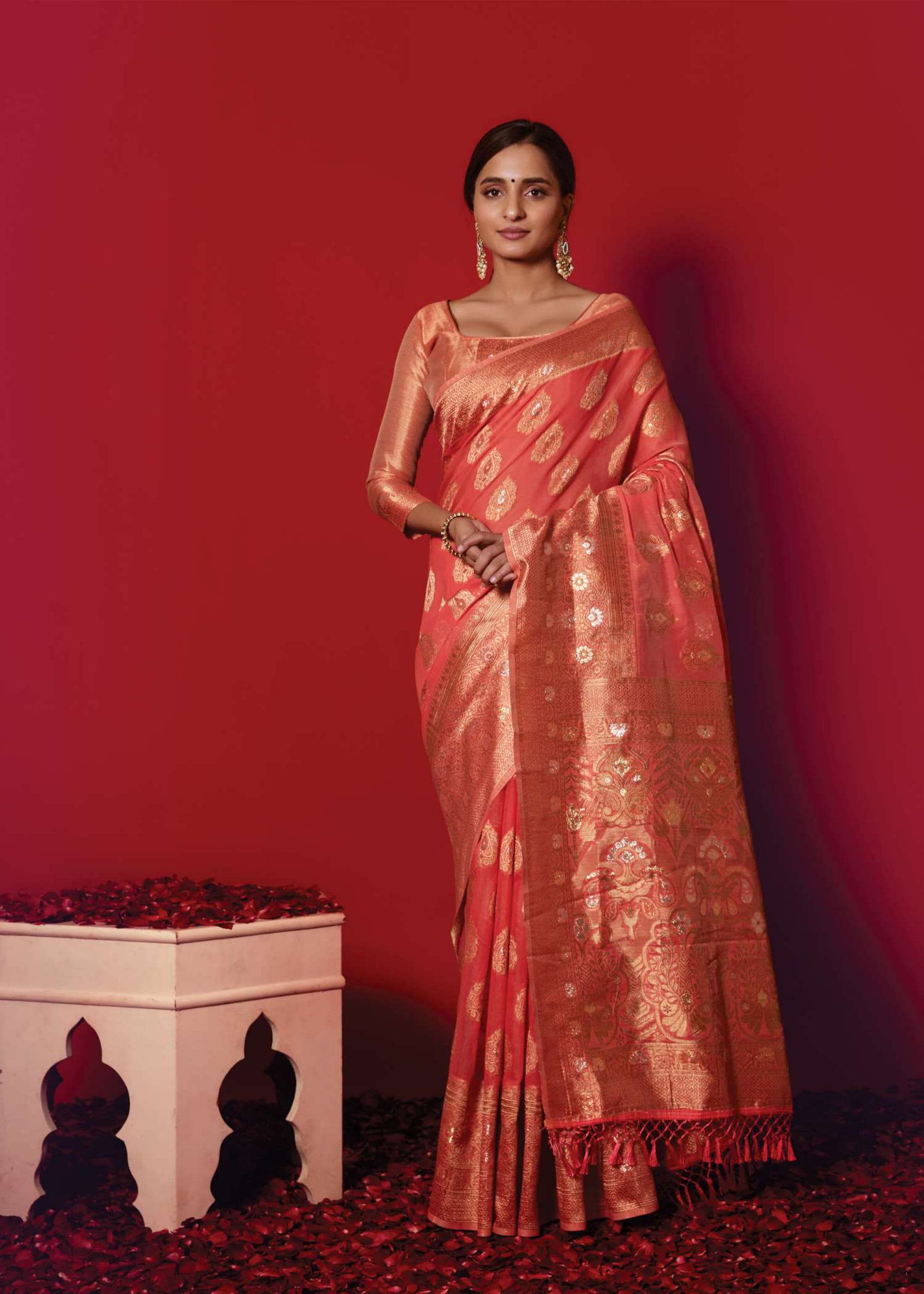 shangrila kasab zari vol 7 linen weaving zari rich pallu sarees