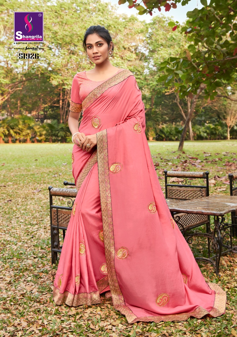 Shangrila Launch Fashion Frame Soft Dolla Silk Designer Embroidery Work Saree Trader