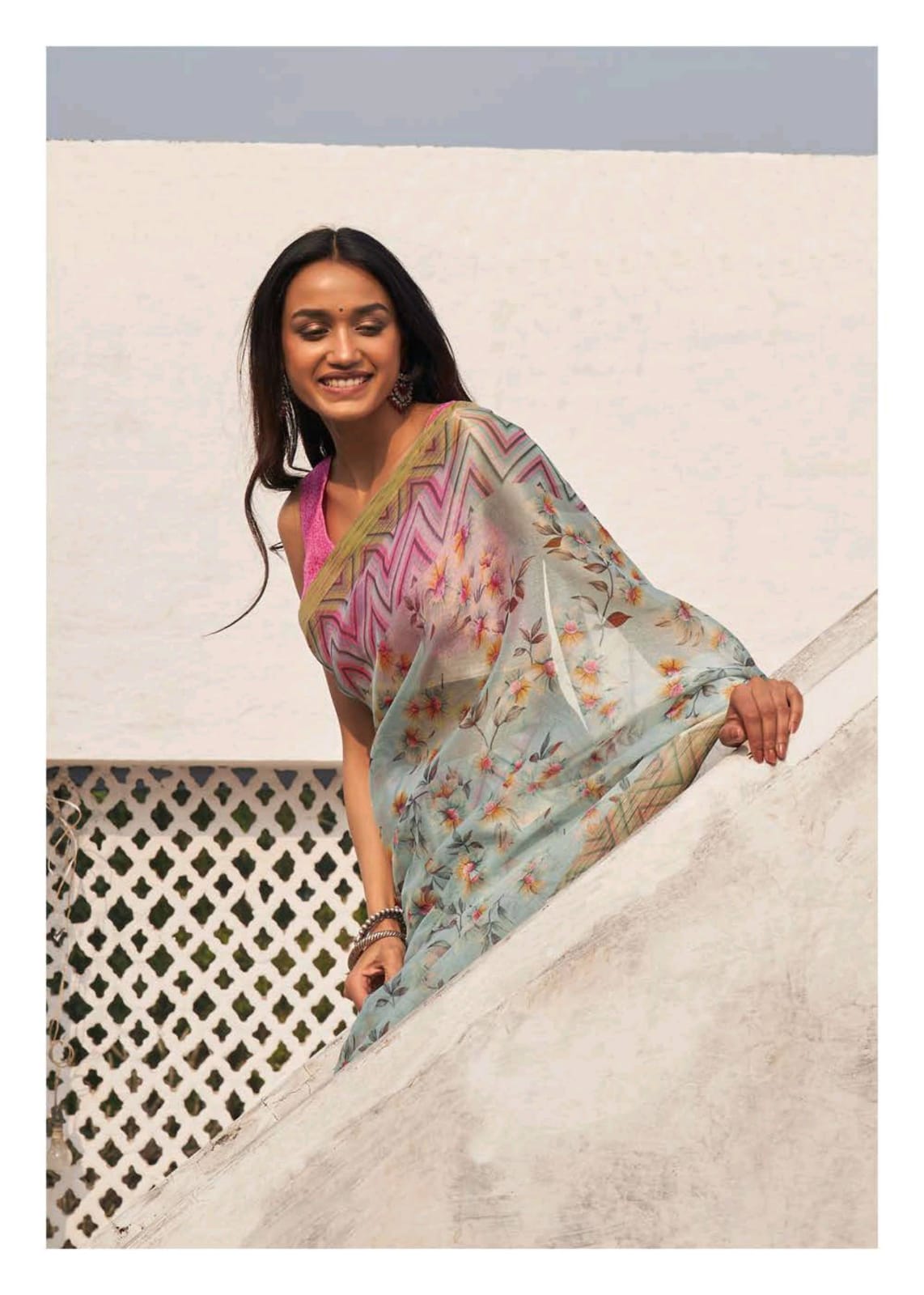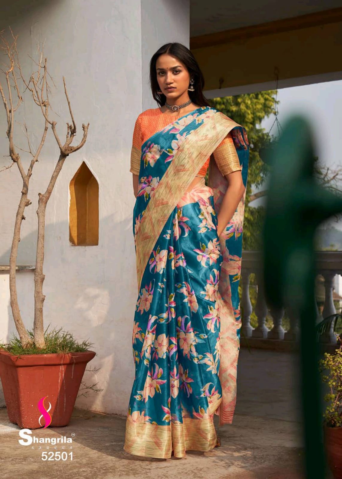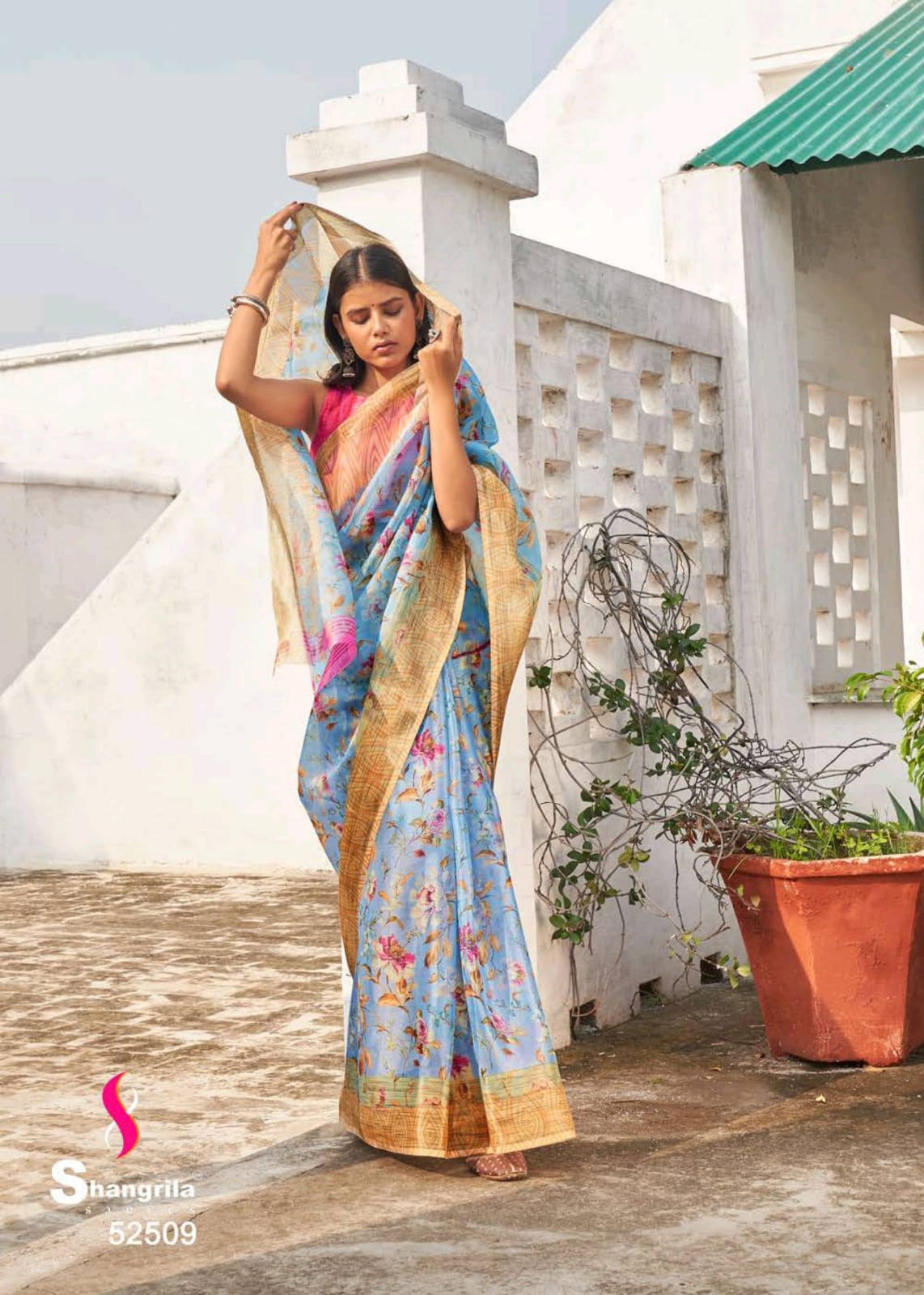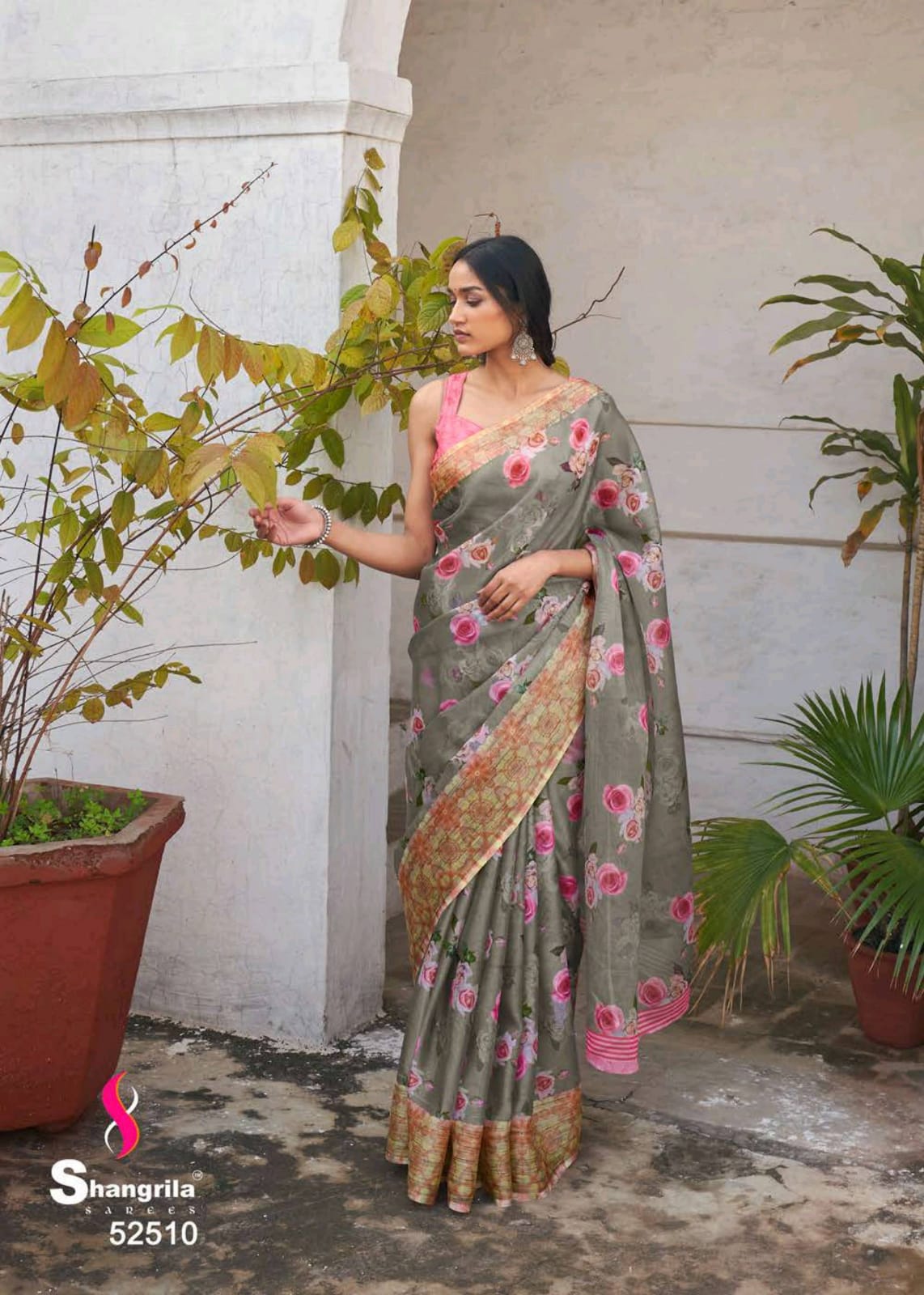 Shangrila Launch Rosey Orgenza Digital Floral Print Organza With Weaving Border Saree