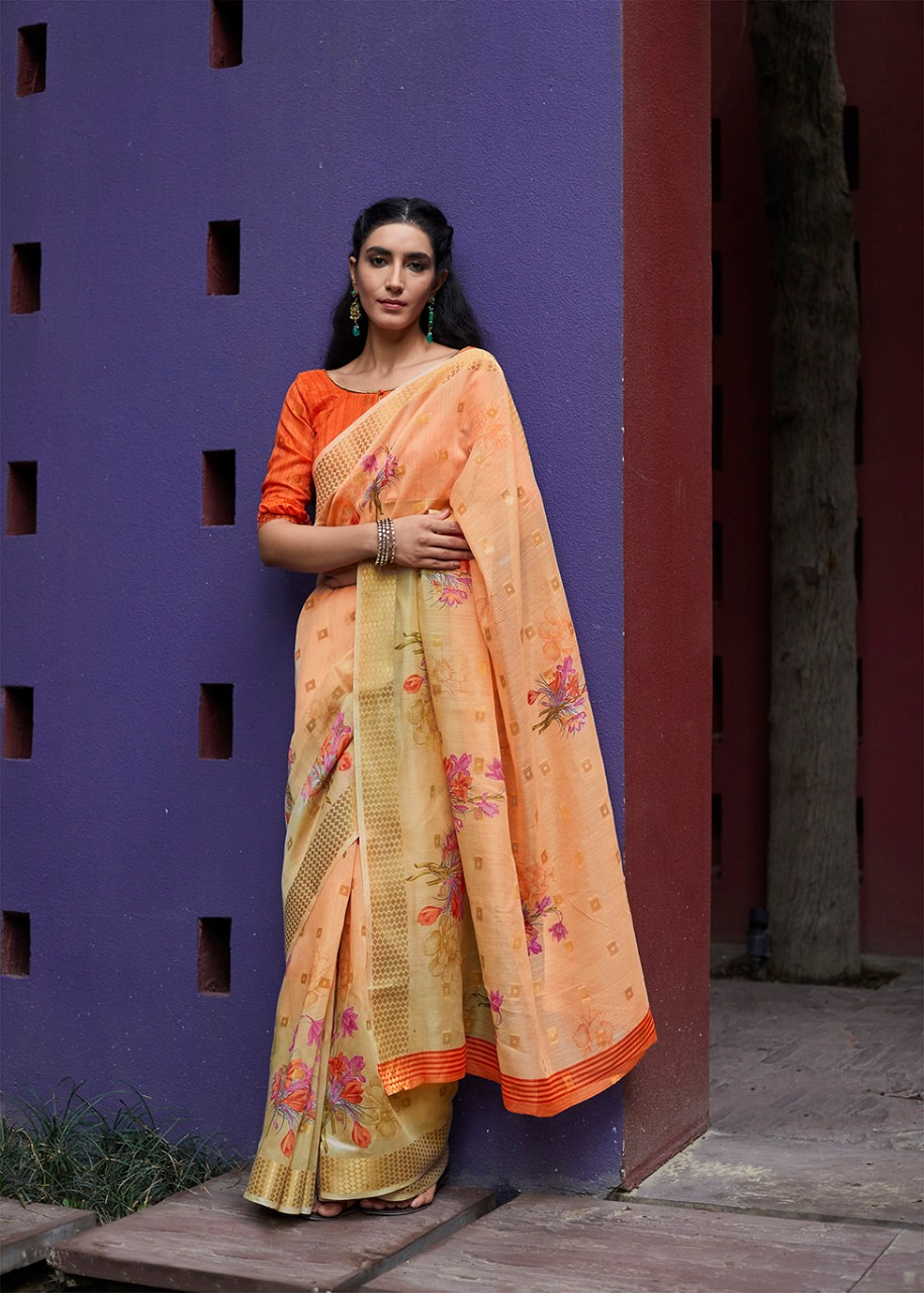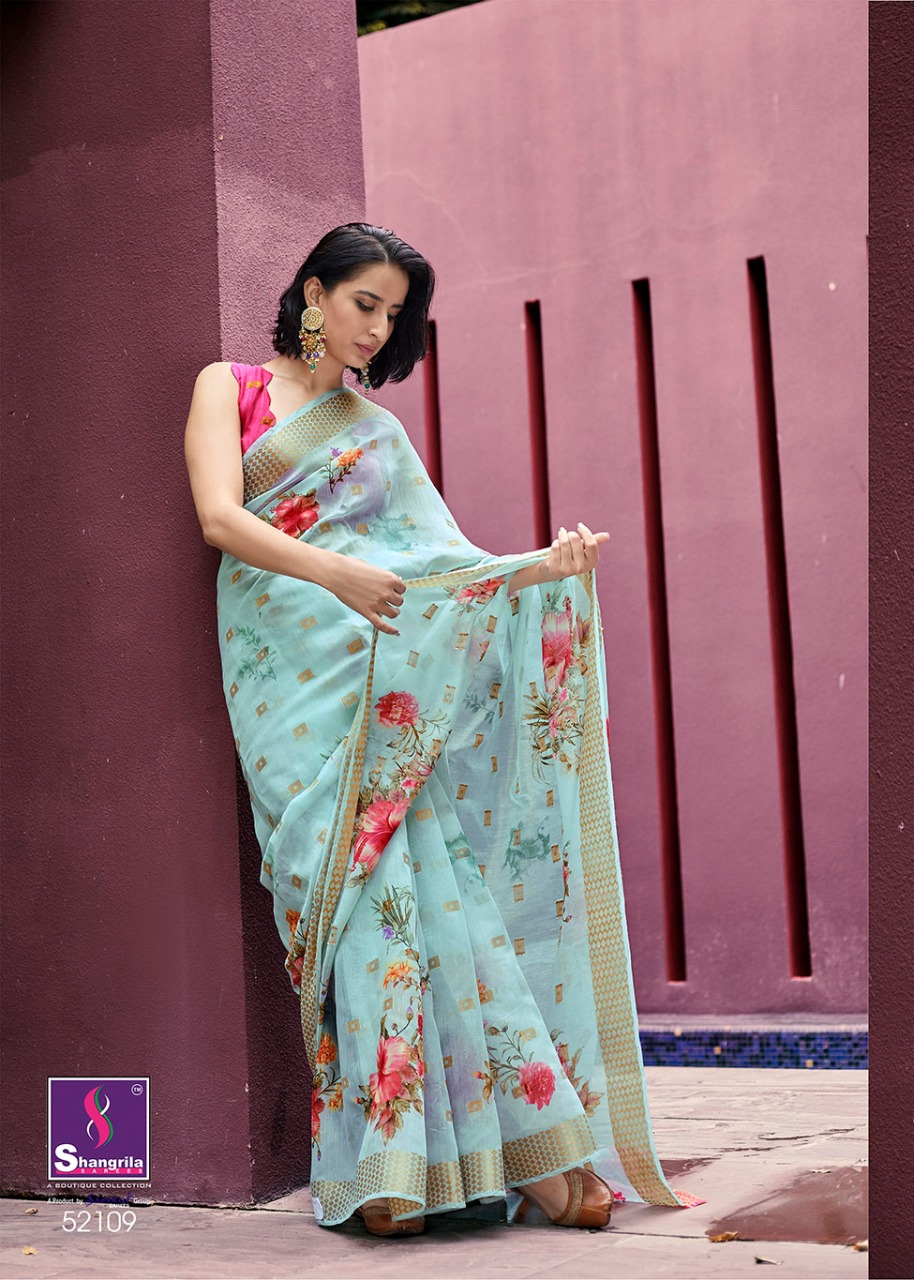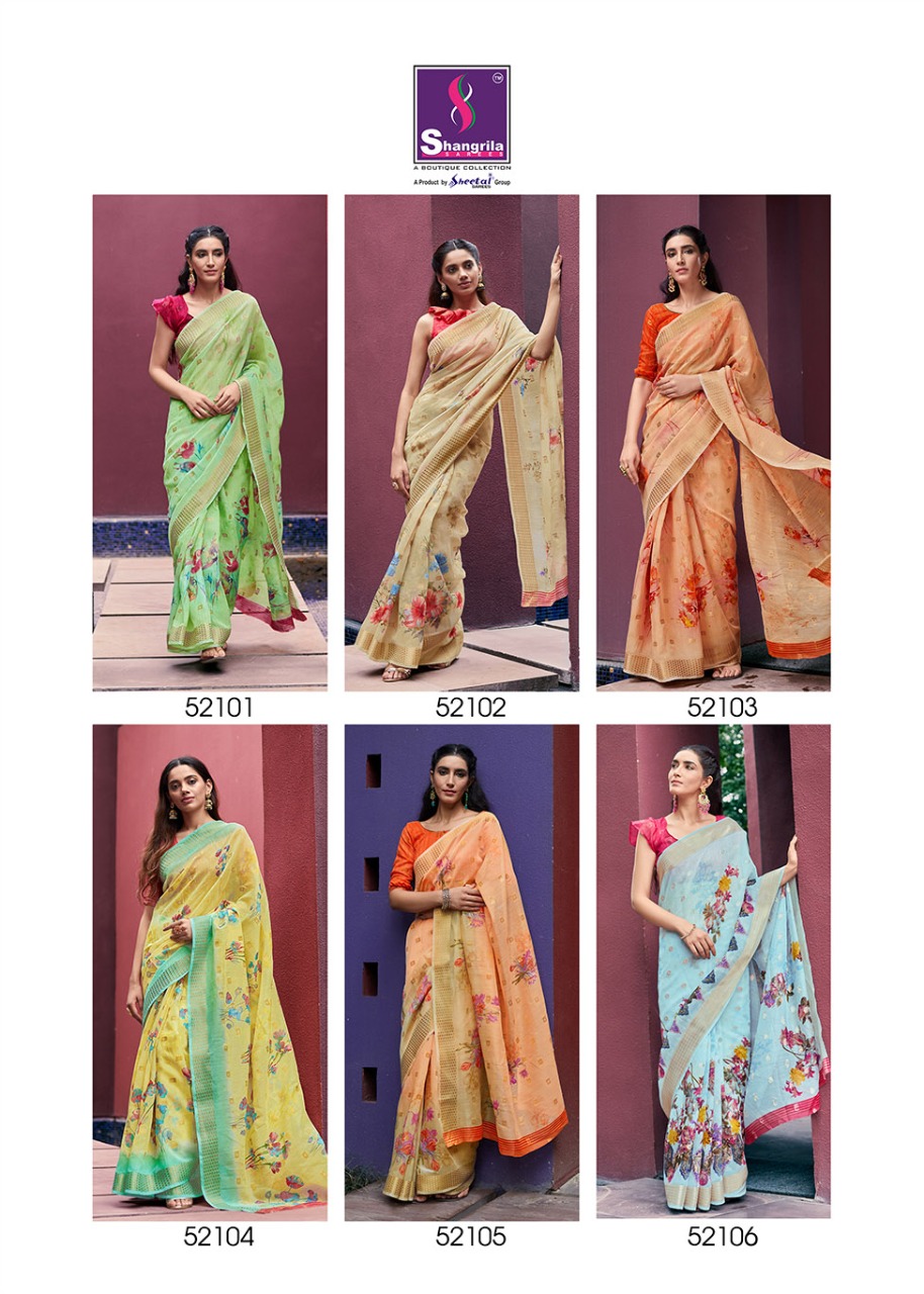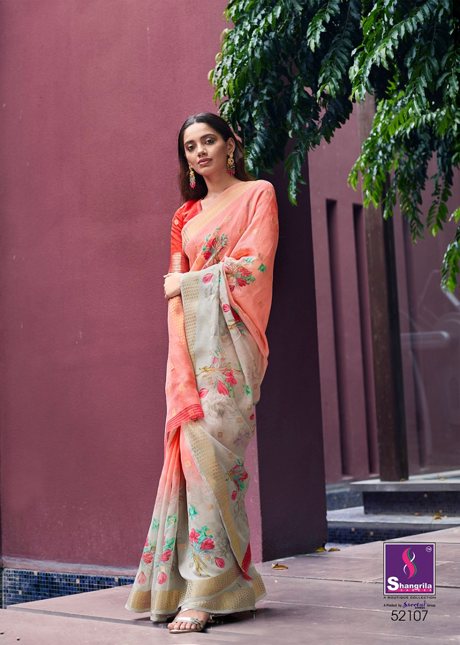 Shangrila Launch Senorita Vol 3 Linen Jacquard Digital Print Saree Wholesaler