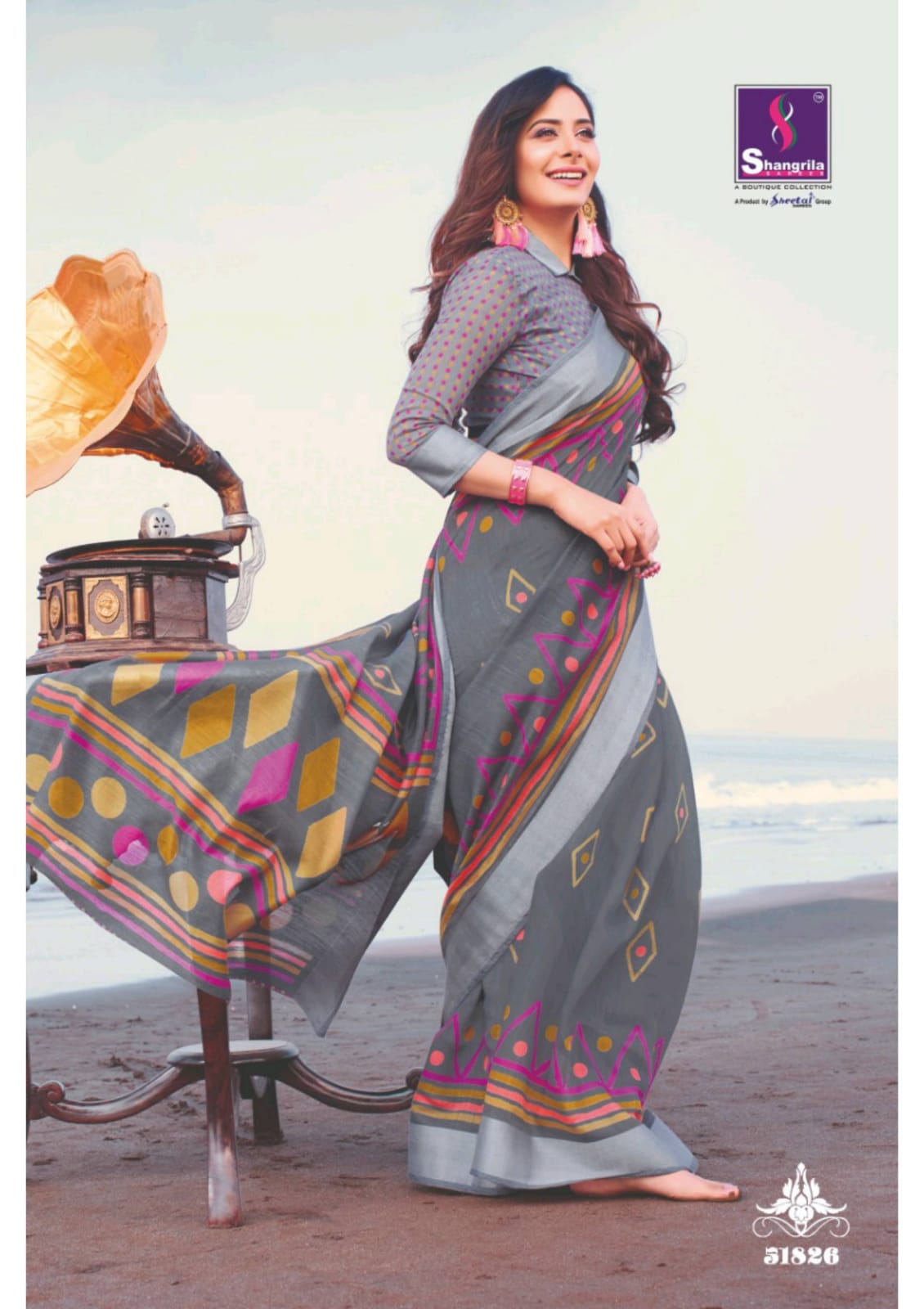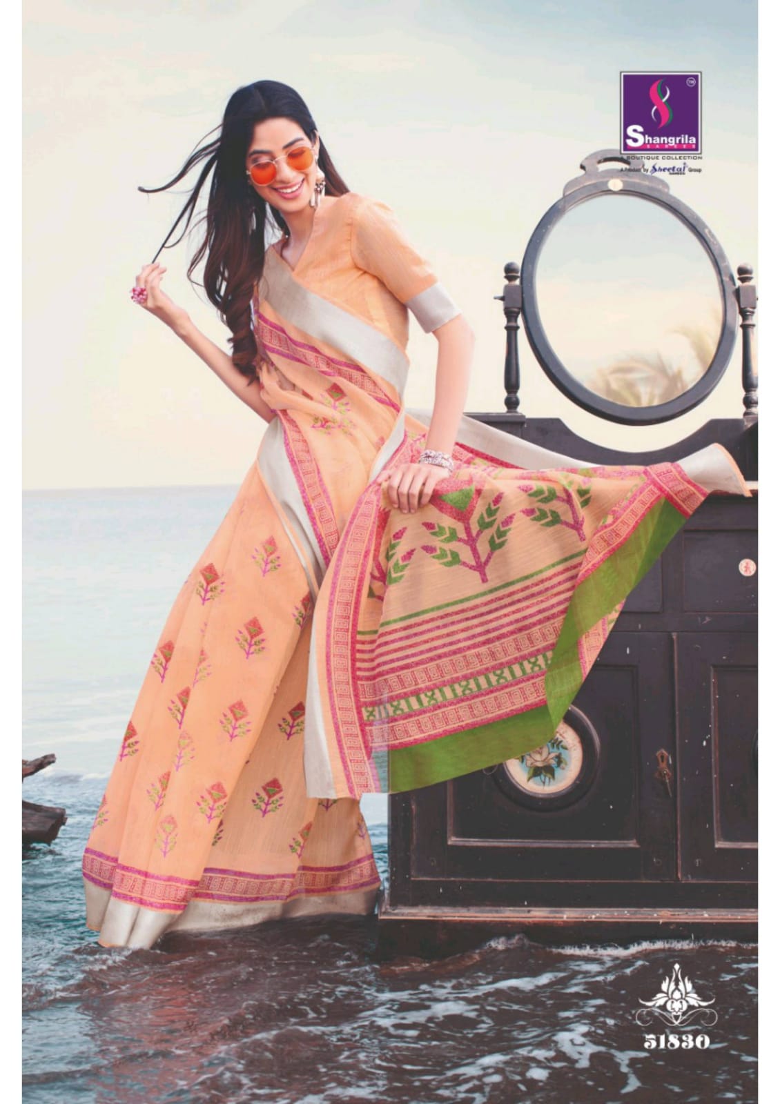 Shangrila Present Neha Soft Linen Printed Saree At Chepest Price