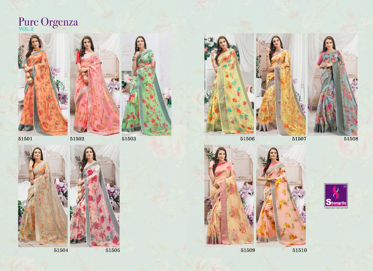 Shangrila Present Pure Orgenza Vol 2 Digital Print Casual Wear Saree Wholesaler