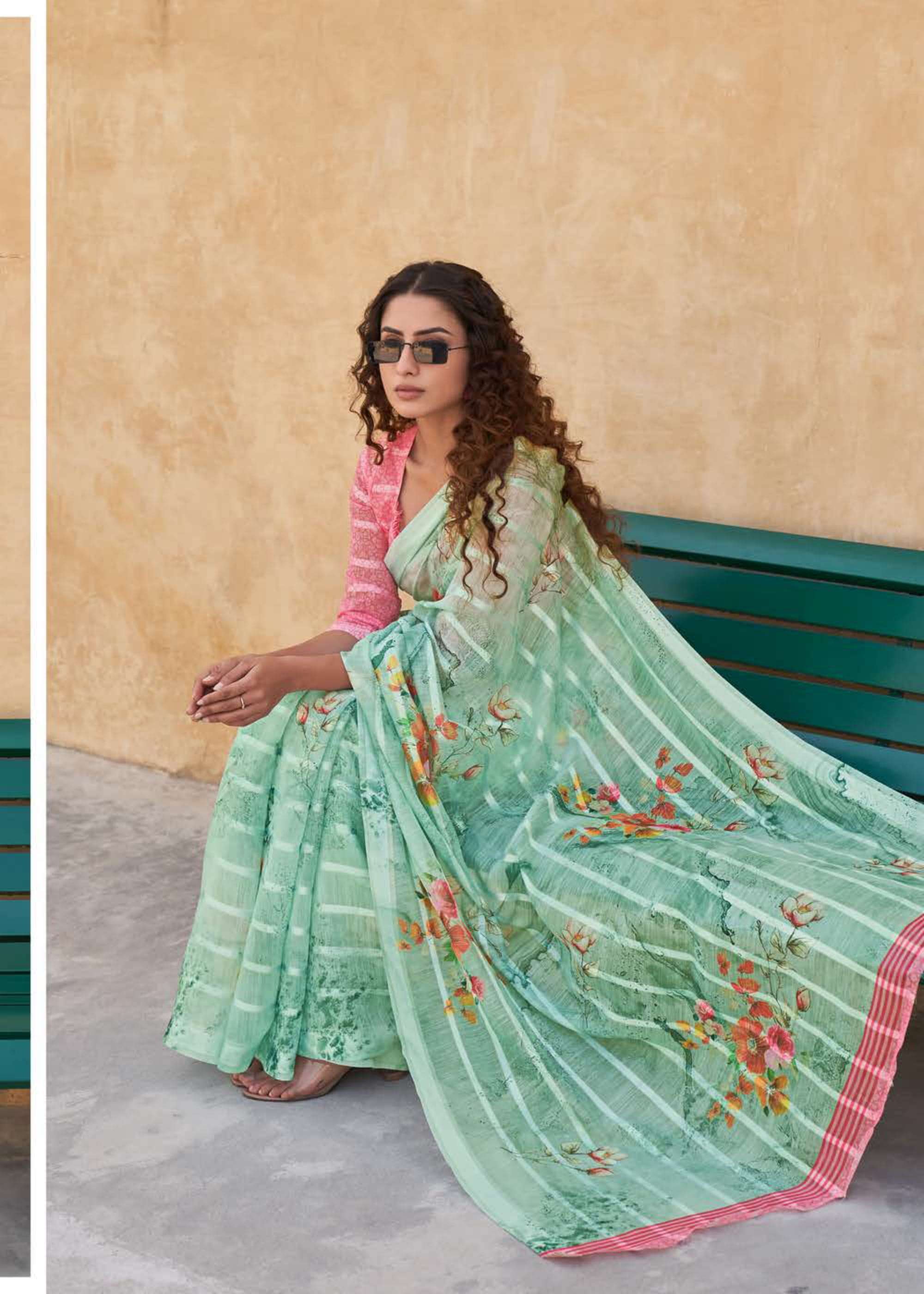 shangrila santorini vol 3 weaving linen printed fancy sarees
