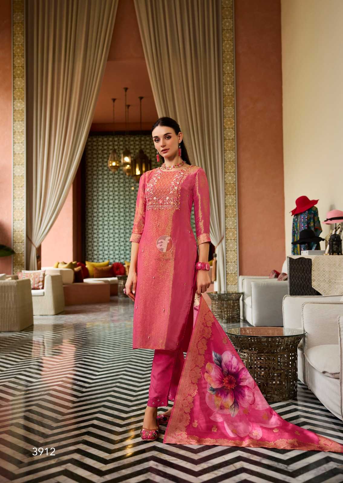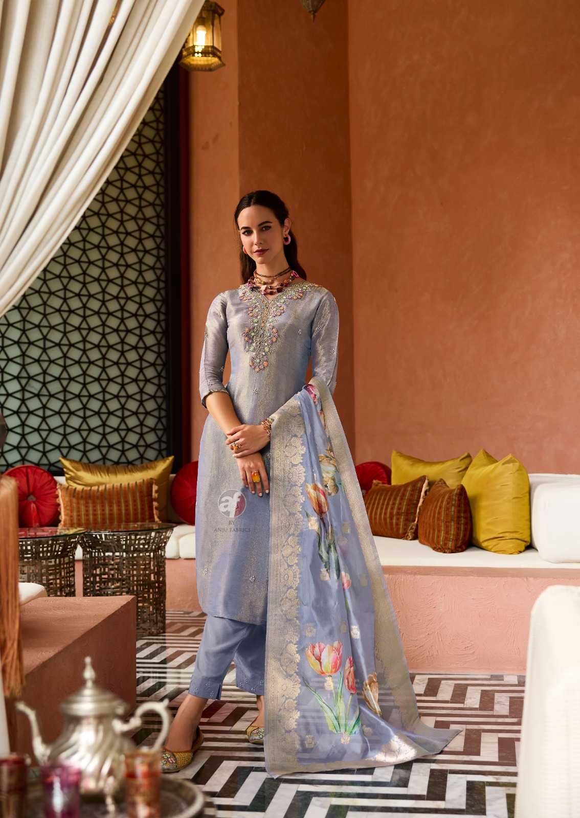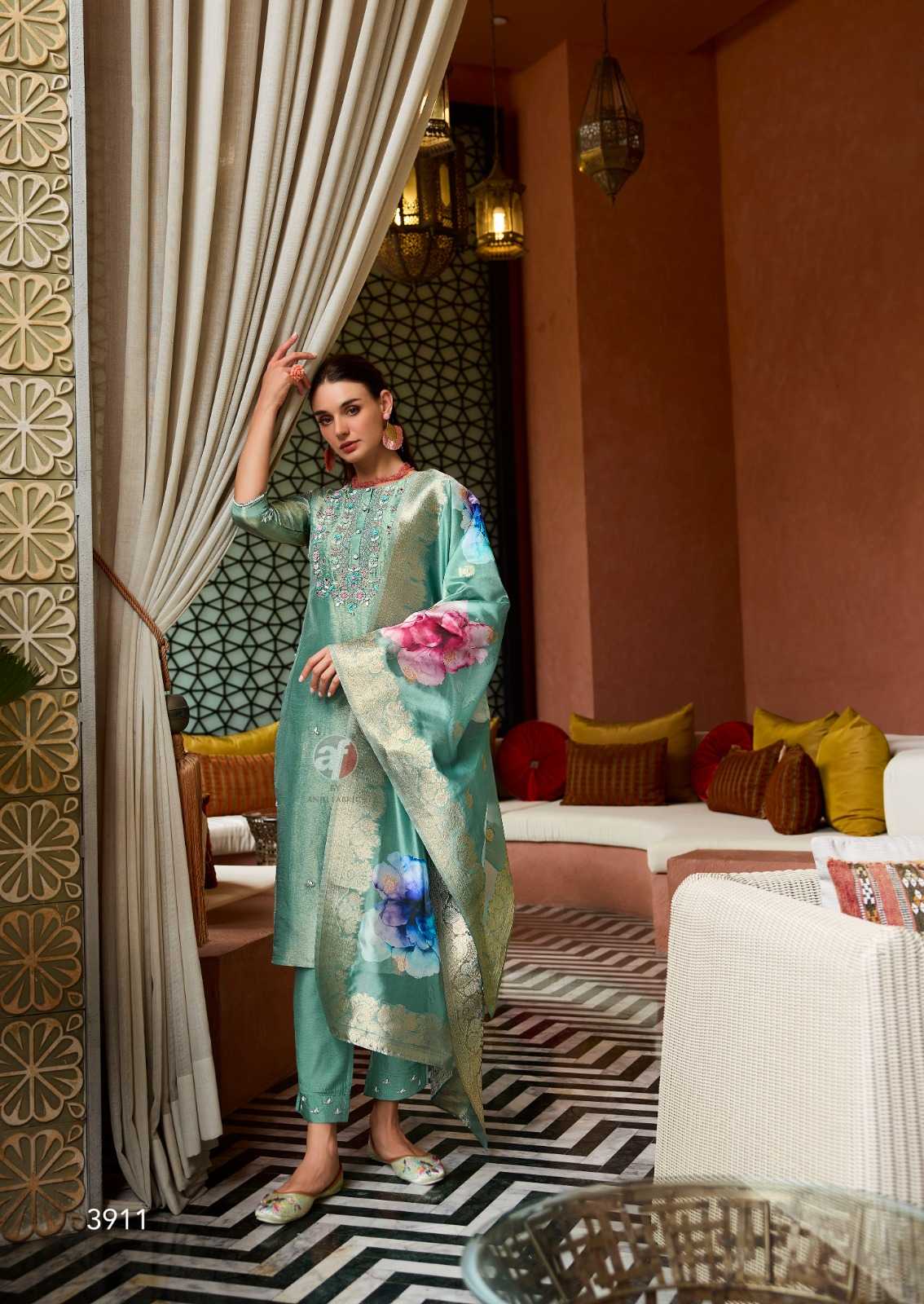 sheesha vol 3 by anju fab tissue shimmer full stitch big size party wear 3pcs dress