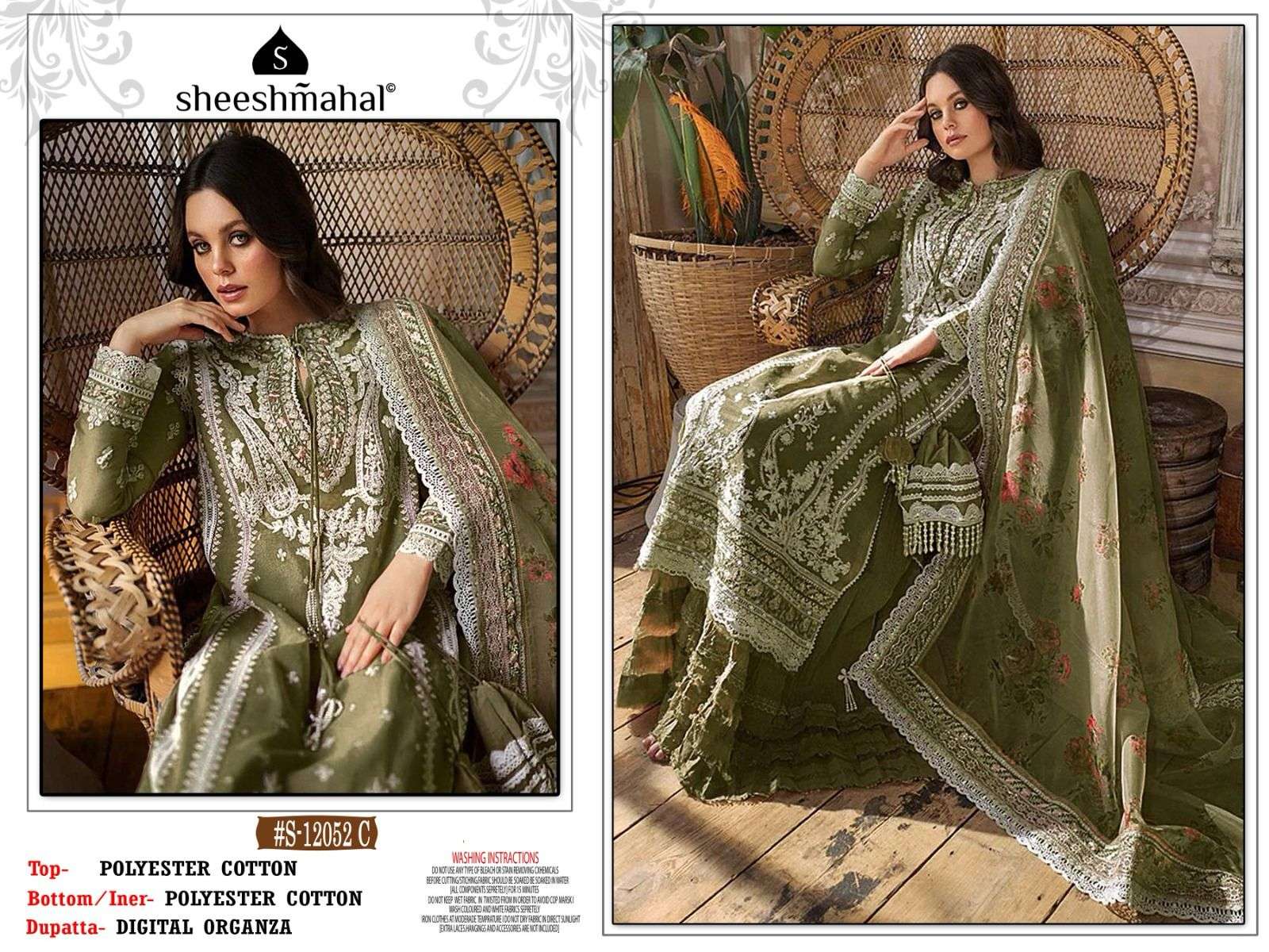 sheeshmahal 12052 designer heavy work pakistani suits material with digital organza dupatta