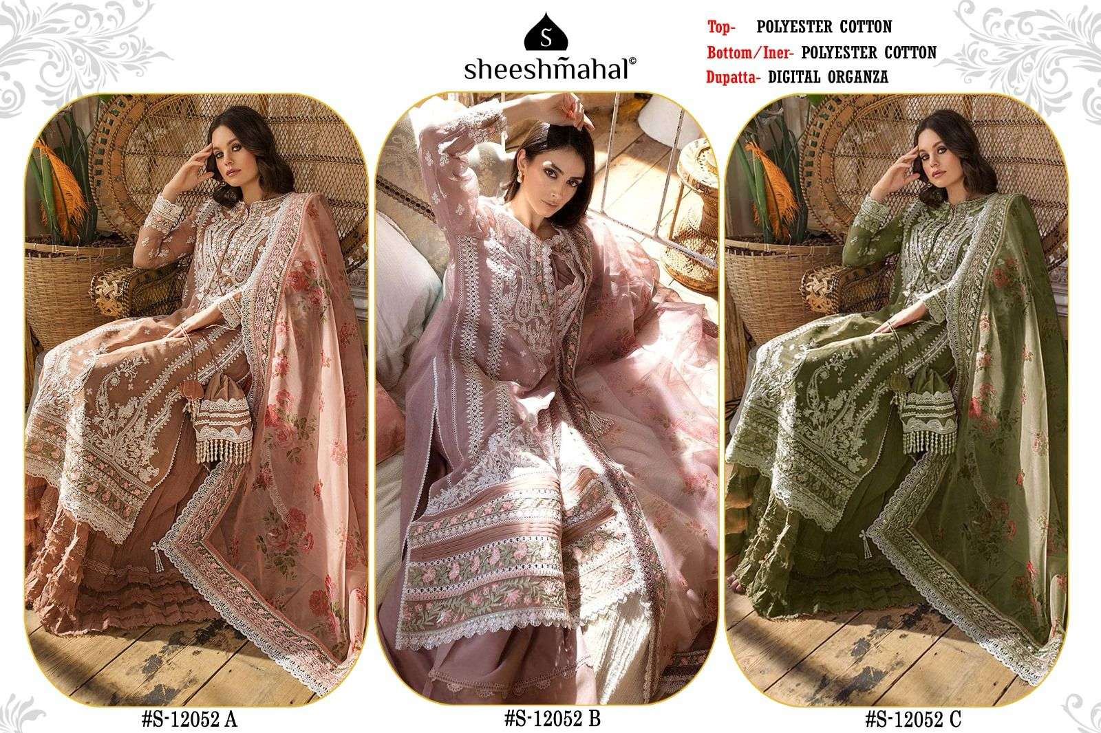 Sheeshmahal 🌹#S-12052🌹 👇🏻👇🏻Fabric details 👇🏻 👇🏻 👗 Top : POLYESTER COTTON WITH EMBROIDERY 👖Bottom :- POLYESTER COTTON 🧣Dupatta : DIGITAL ORGANZA Ready to ship Rate. - 1195/- |