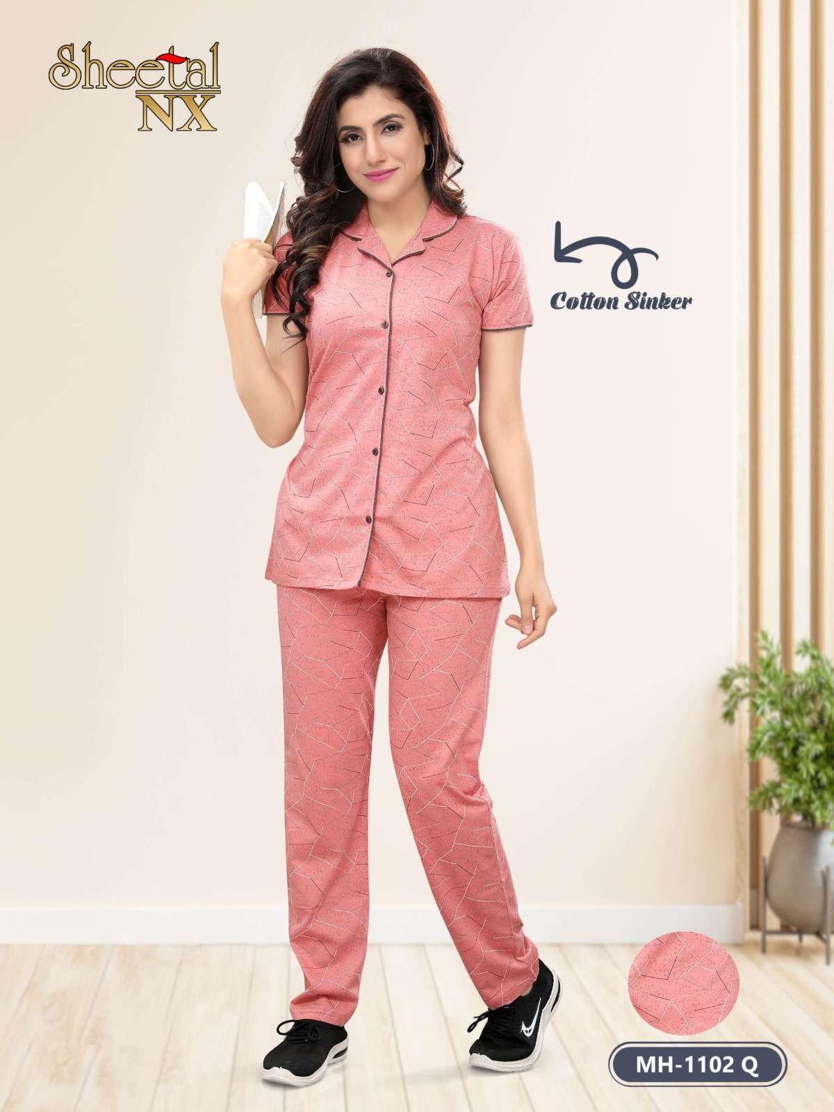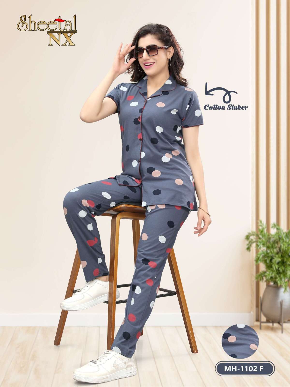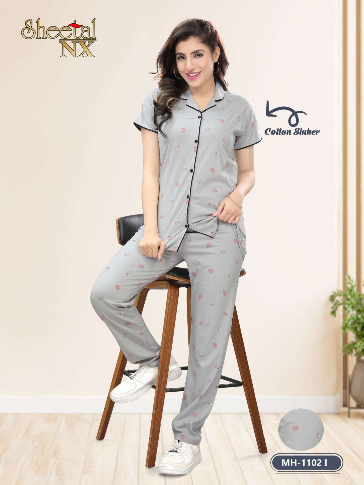 sheetal nx 1102 vol 2 comfortable front open collar night wear suit