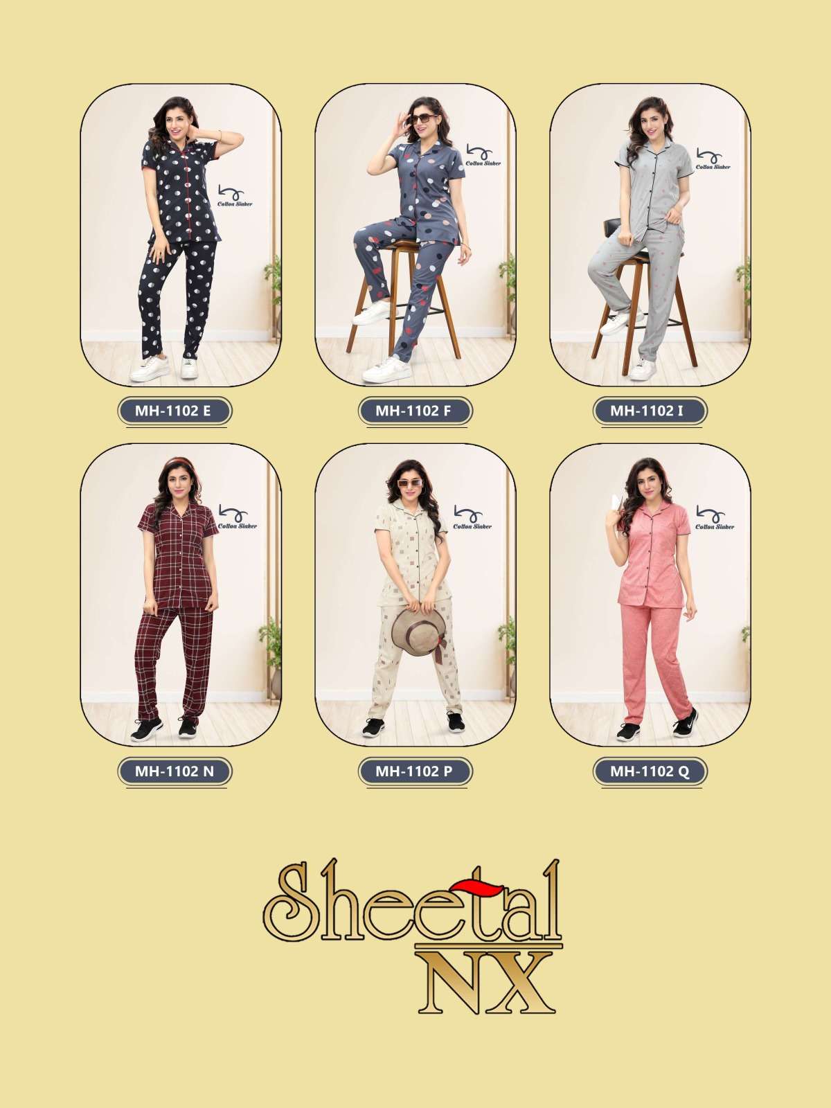 SHEETAL NX DNO 1102 PART 2 FRONT OPEN COLLAR NIGHT SET (6 PCS PACK) PREMIUM FABRIC* M-540 |