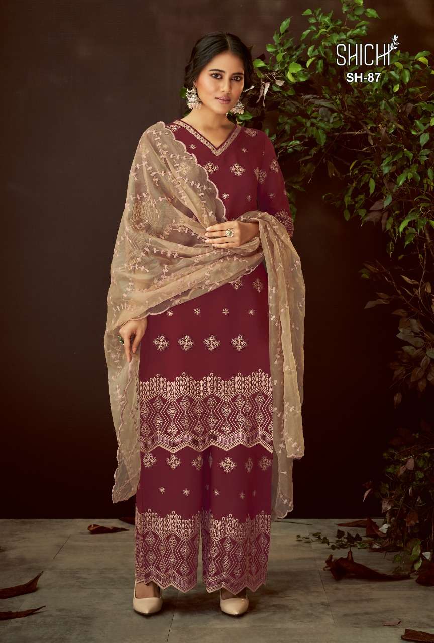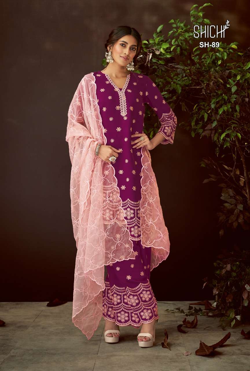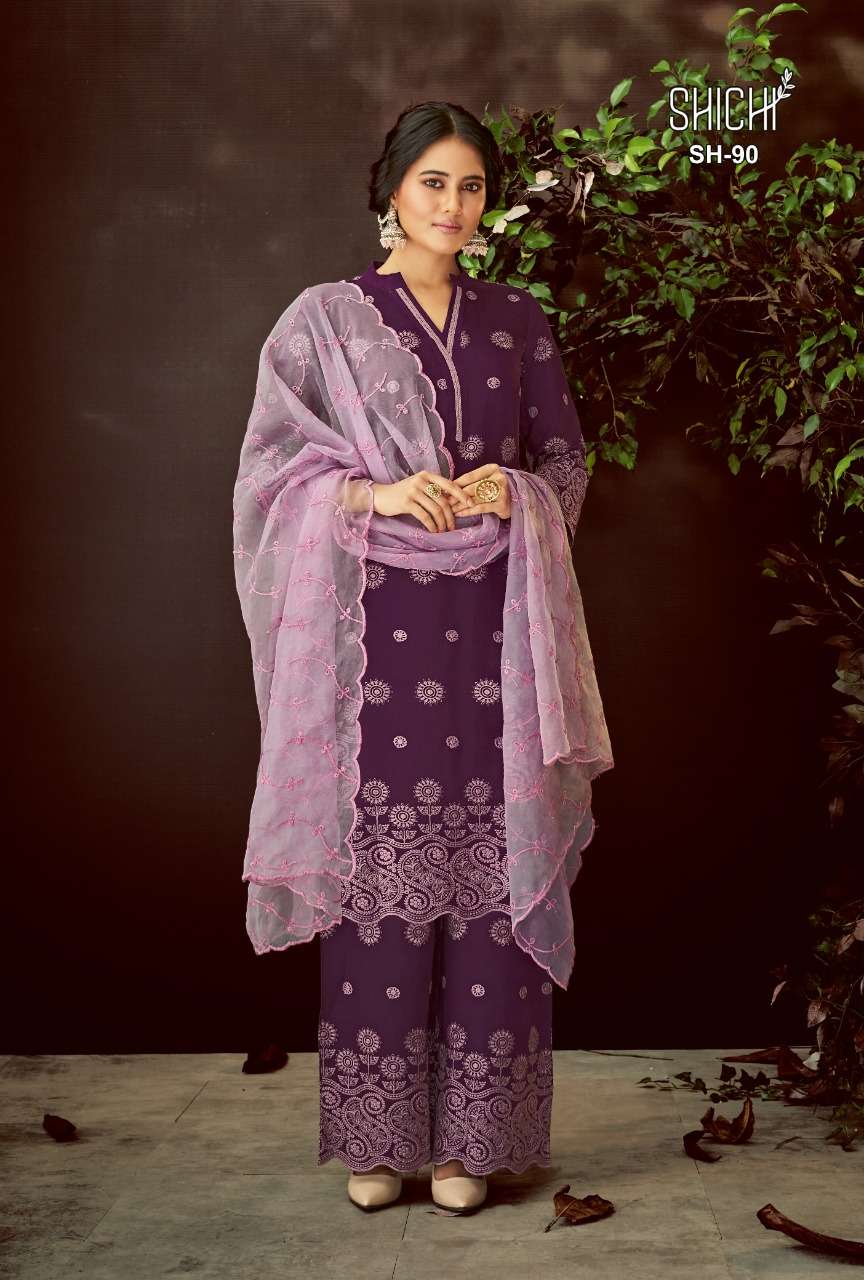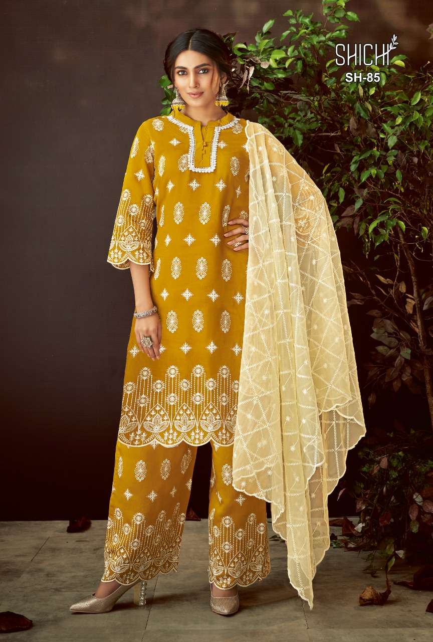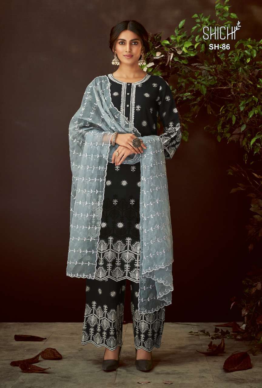 shichi aabha pure viscose readymade top with pant and dupatta set