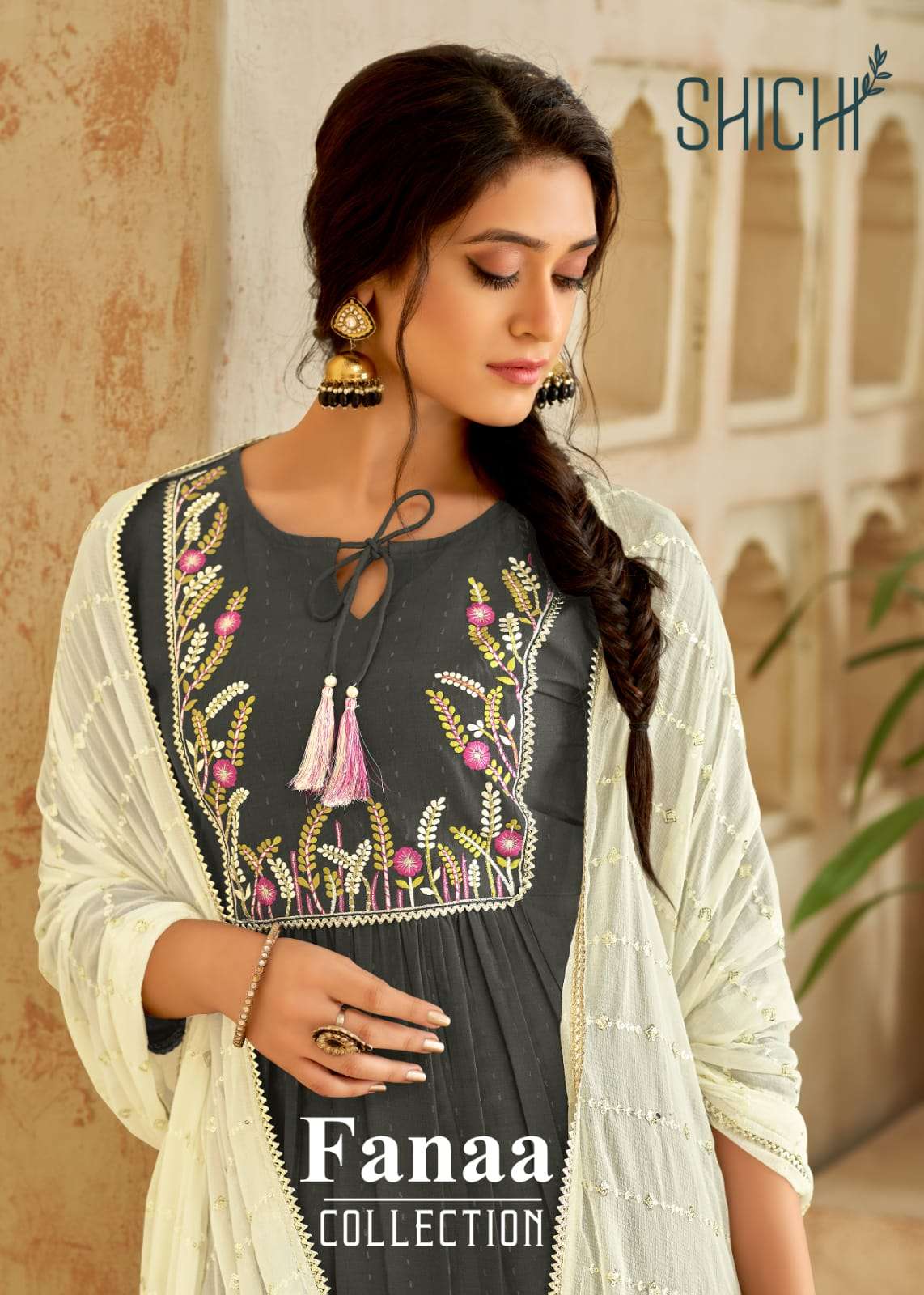 shichi fanna readymade top bottom with dupatta set