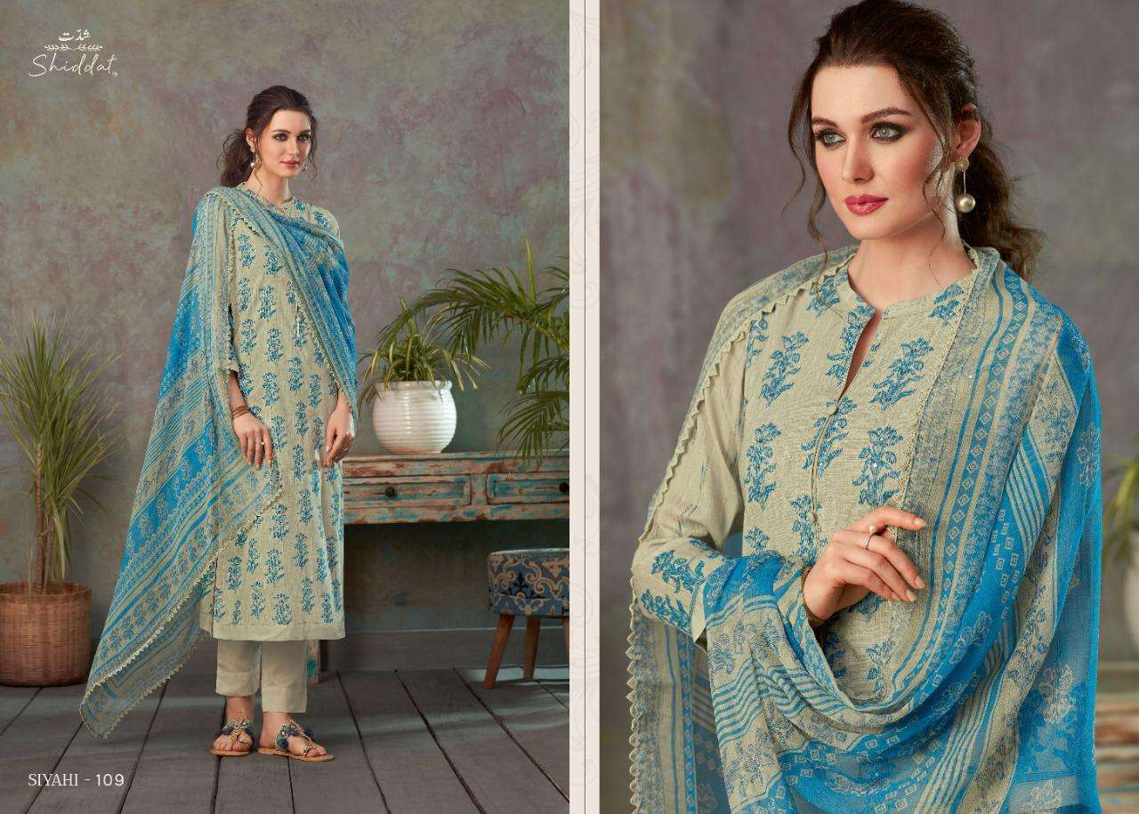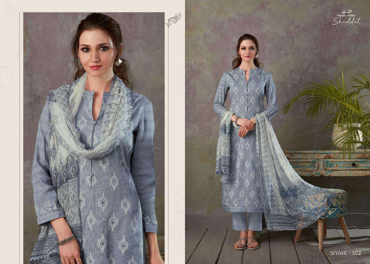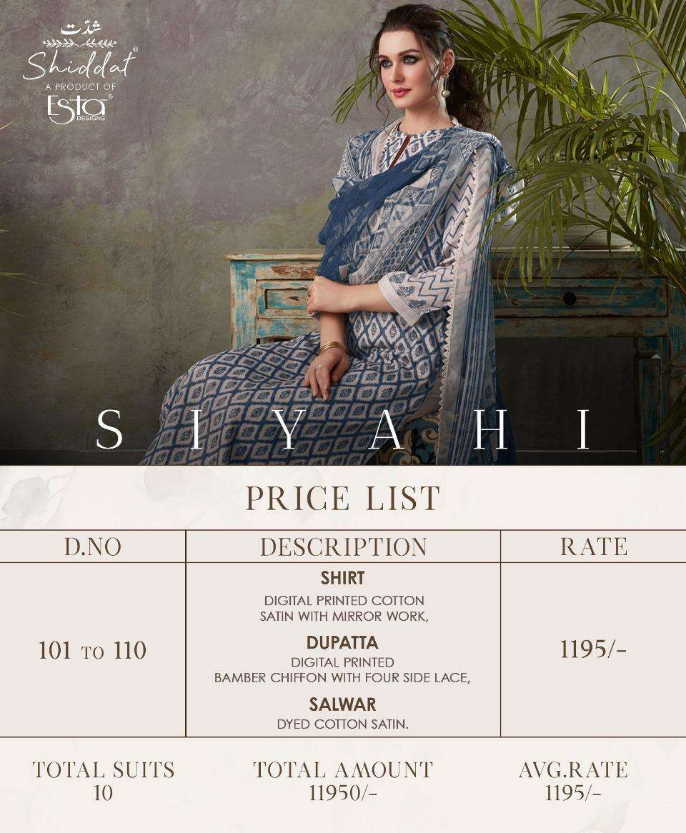shiddat present siyahi cotton satin summer wear fancy suits wholesaler