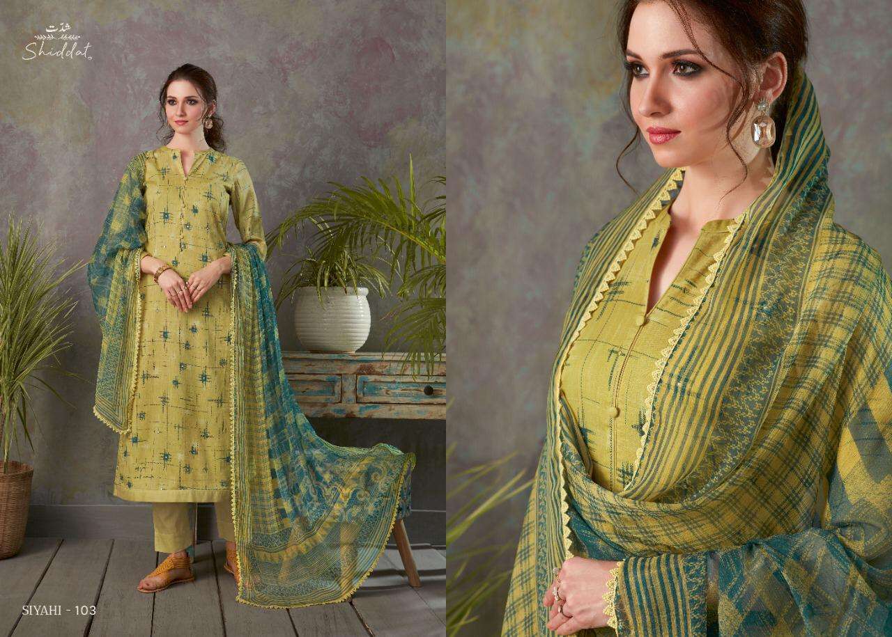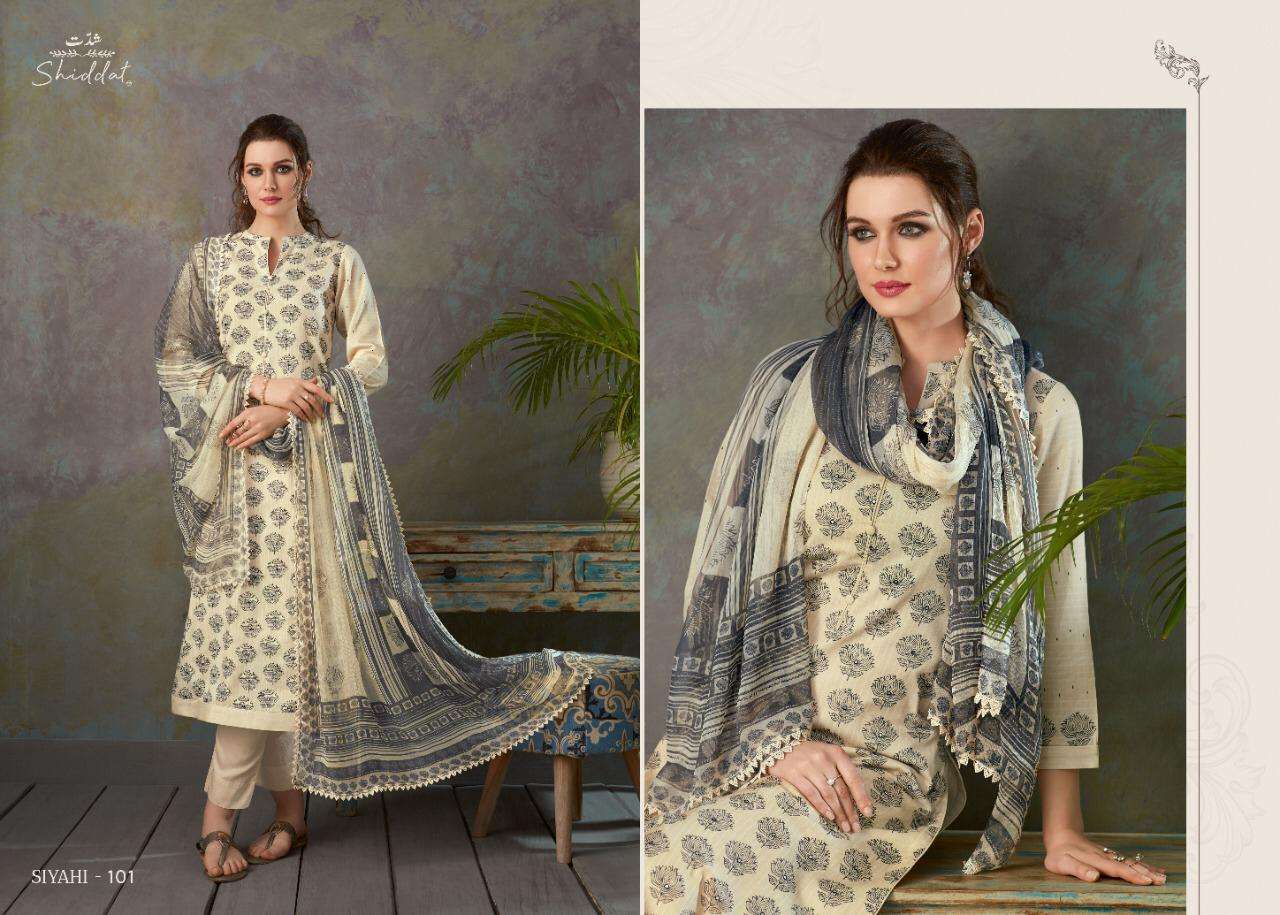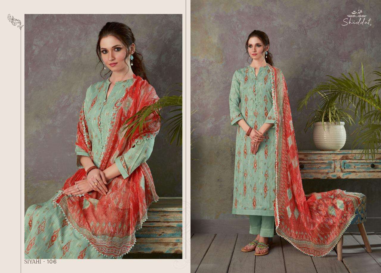 shiddat present siyahi cotton satin summer wear fancy suits wholesaler