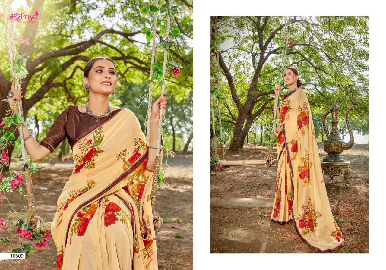 Shikha Printed Chiffon Fancy Sarees By Madhupriya.