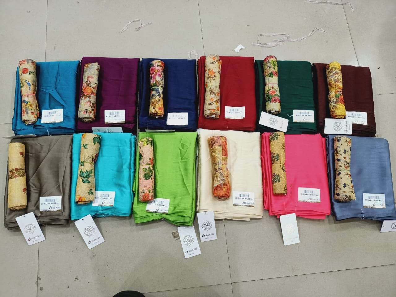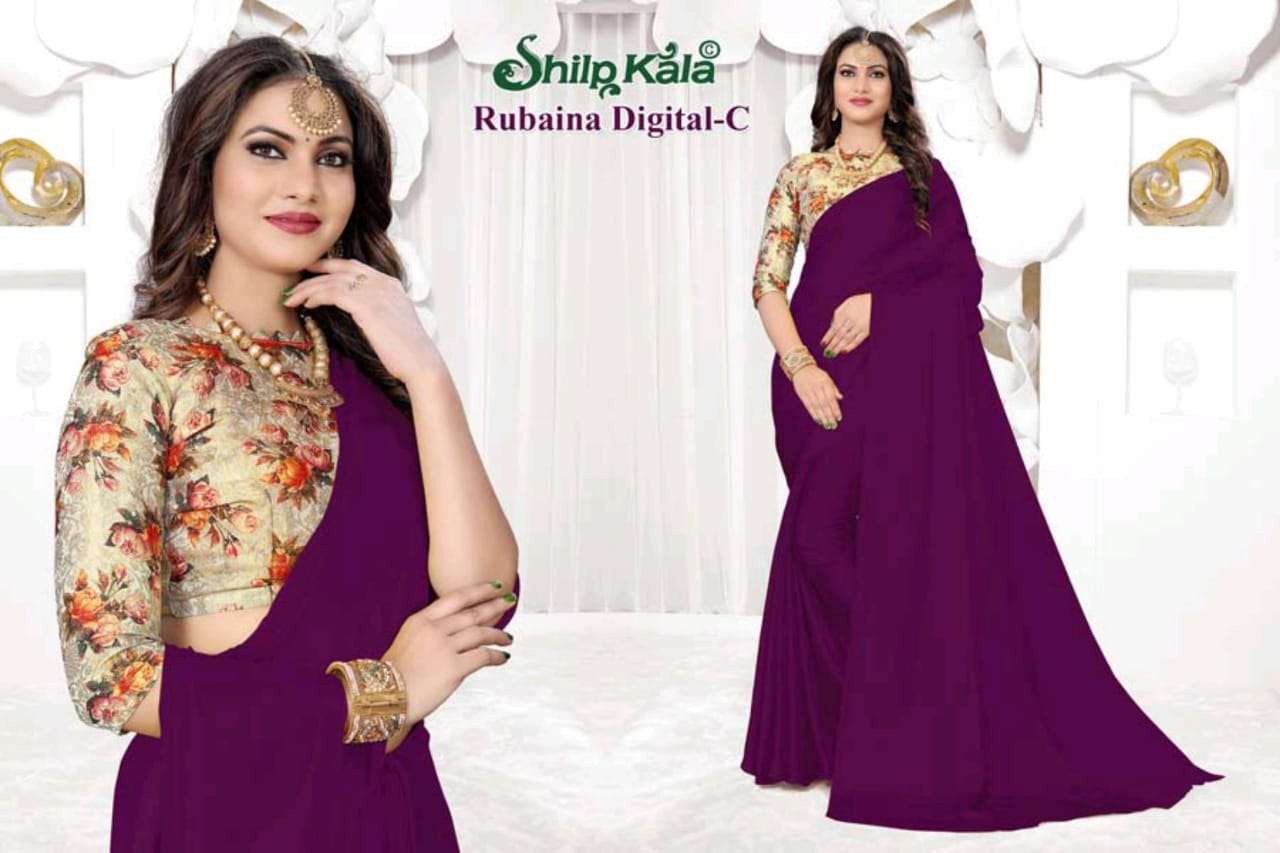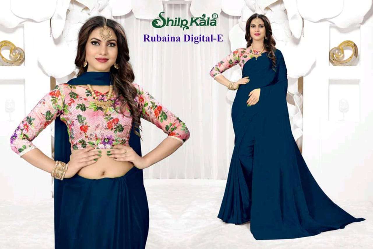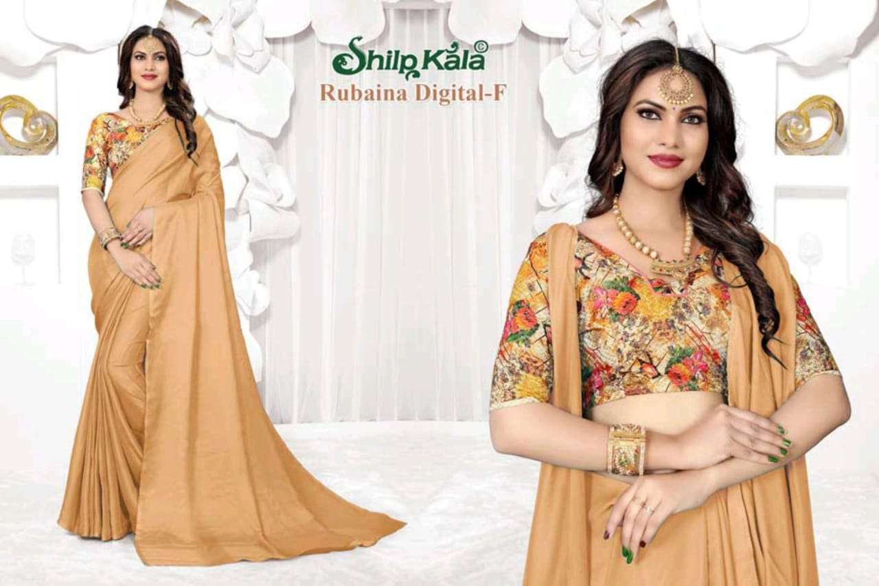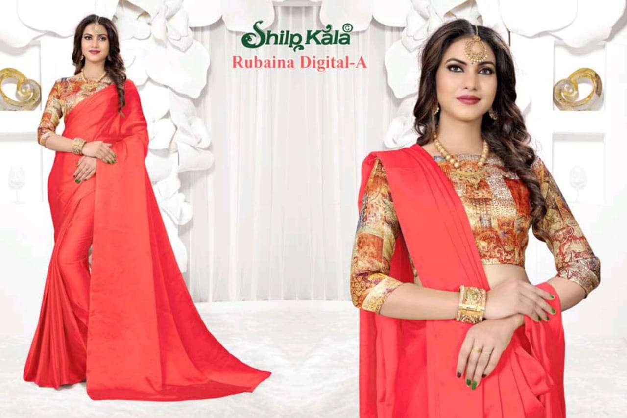 shilp kala present rubaina digital satin plain saree with fancy blouse concept