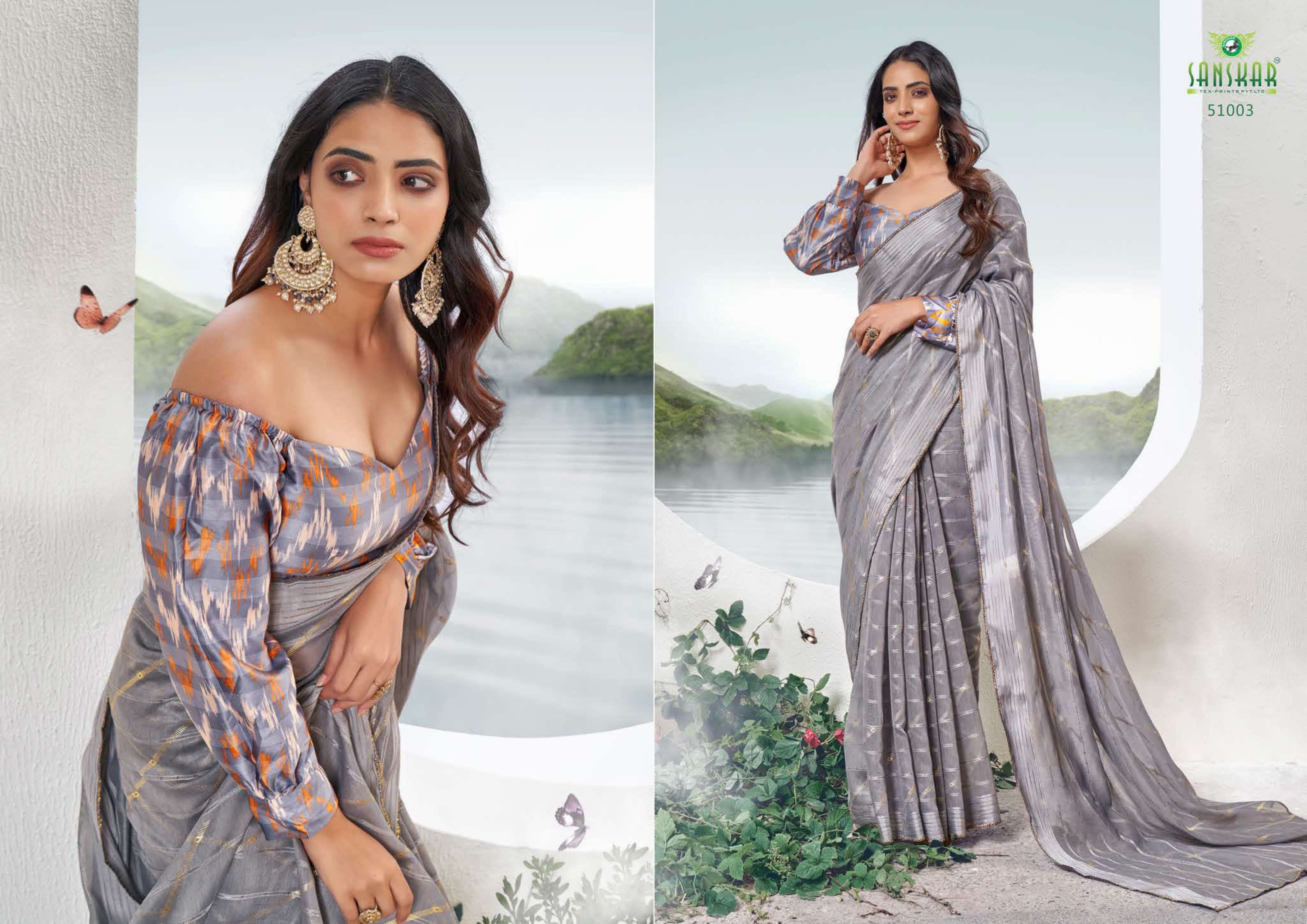 New launching CATLOUGE-SIMER Fabric- pure cotton value addition sequence weaving with digital fancy blouse Qty- 8 dis RATE - ₹ 965 |