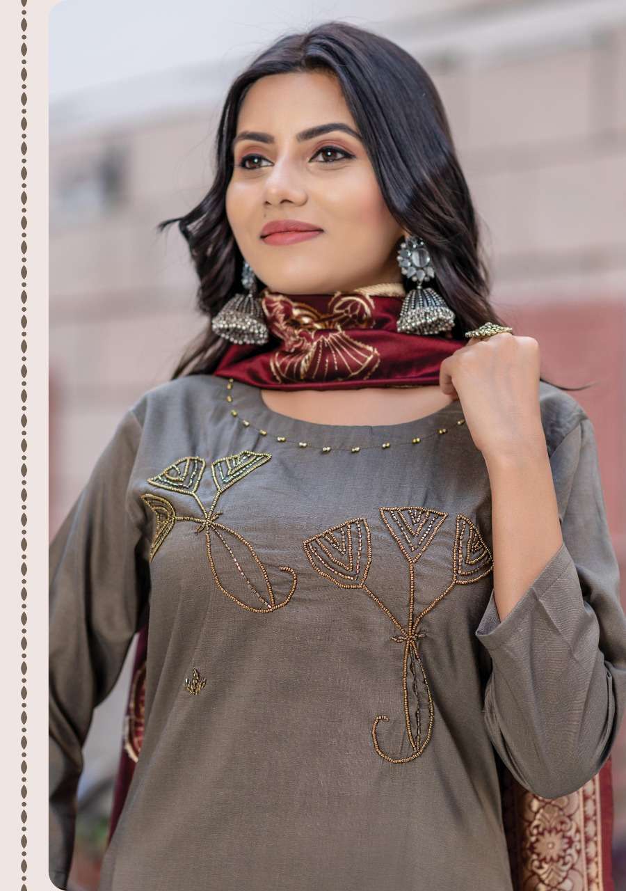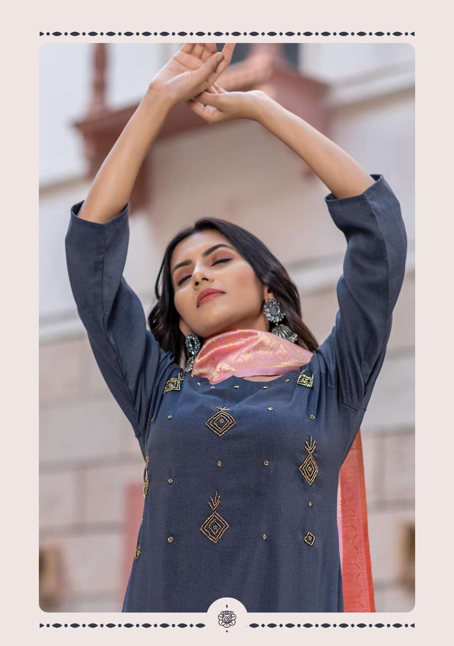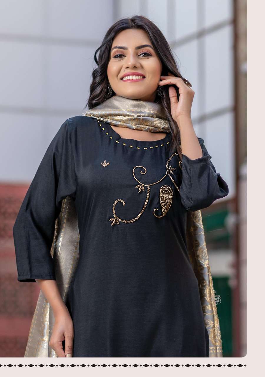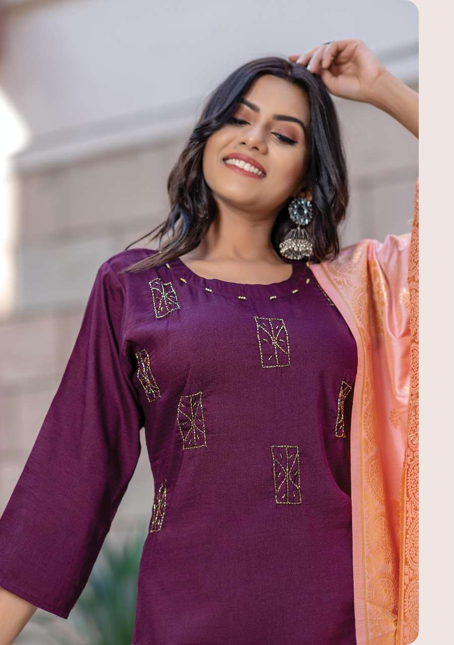 Launch New Kurti with Banarasi Dupatta Catalogue Shine 4 Designs : 8 Size L XL 2XL 3XL 4XL 5XL Rate - 621/- Fabric Details : Finest Grade Of Chinon Silk Dupatta - Pure Banarasi Silk Dupatta |