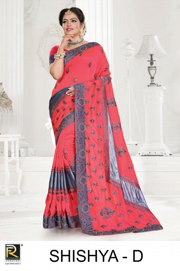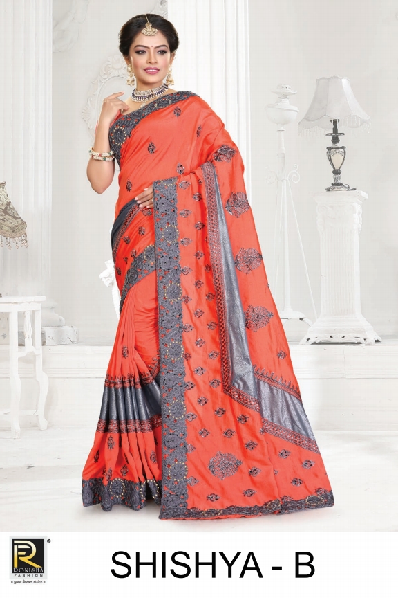 We are launching our new Saree Catalog Brand – Ranjna Sarees Catalog Name : SHISHYA Fabrics – Vichitra Silk Embroidery with Cut pest Cut - 6.30 Mtr * Set to set * Rate 895/- Pc – 04 GST 5 Percent Extra. Book your order now . |