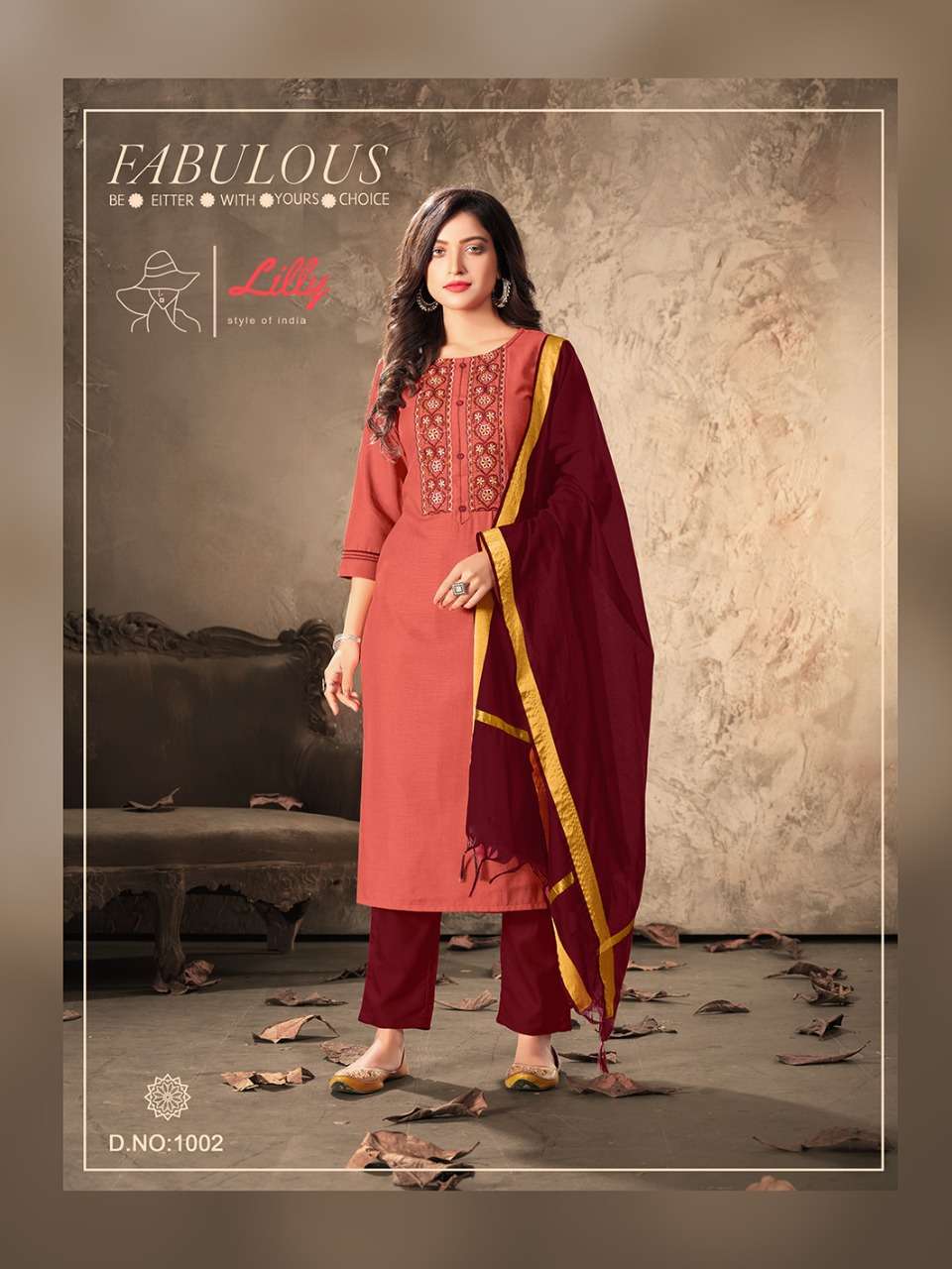 shivali by lilly slub rayon readymade casual suits wholesaler